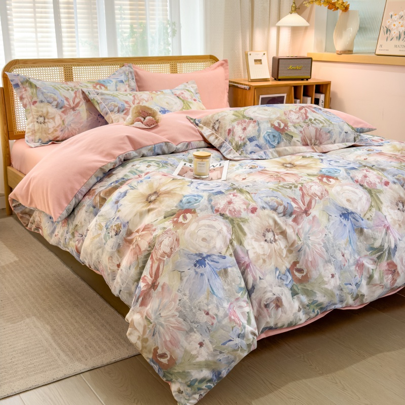 (总)鸿森林 2025新款全棉纯棉磨毛印花四件套,德芙-粉,花吟-黄,浪漫花舞-兰,露西-灰,律动-粉,落樱-粉,曼城-蓝,莫奈-灰,莫奈-咖,沙慕-蓝