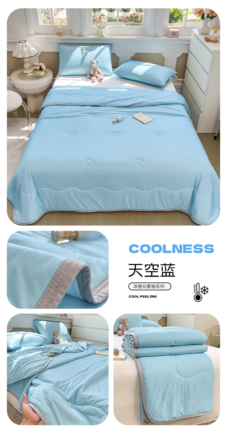 (总)鸿森林 2025新款纯色凉感丝包边夏被空调被,薄荷绿,宾利蓝,米白,皮粉,绅士灰,天空蓝,象牙白,熏衣紫,烟灰