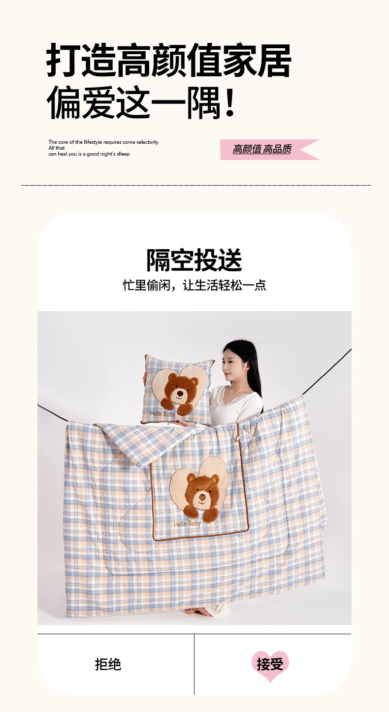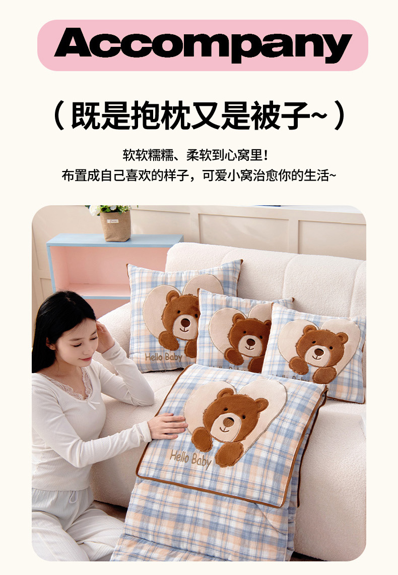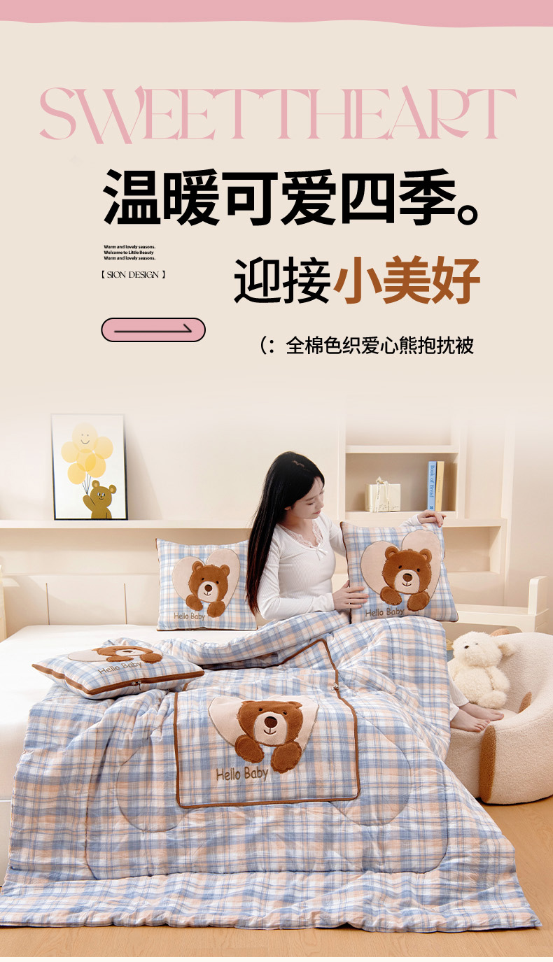 (总)阳光依佰抱枕被 2025新款全棉色织爱心熊抱抌被(控价小号券后不低于59元,大号不低于89元),爱心熊一日落红,爱心熊一日落灰,爱心熊一日落绿,爱心熊一星空桔,爱心熊一星空卡其
