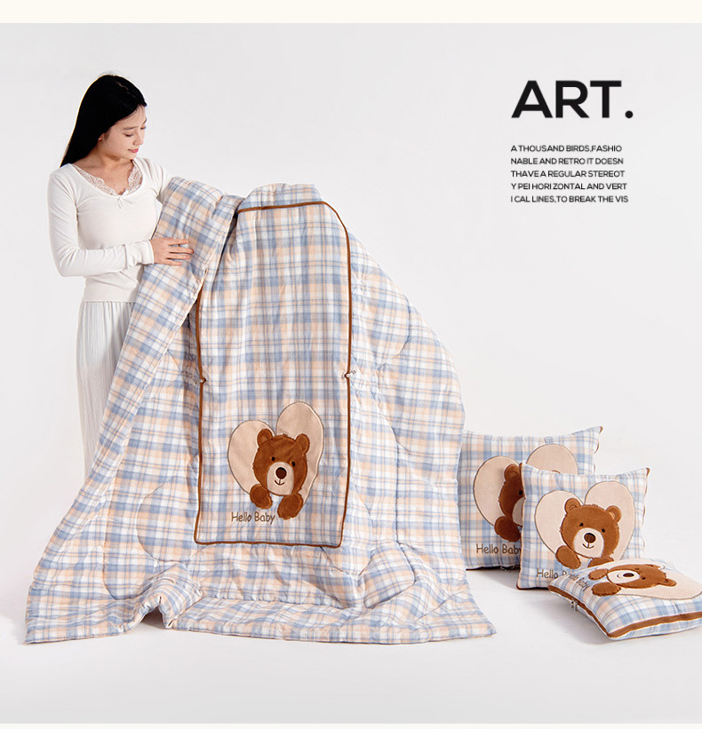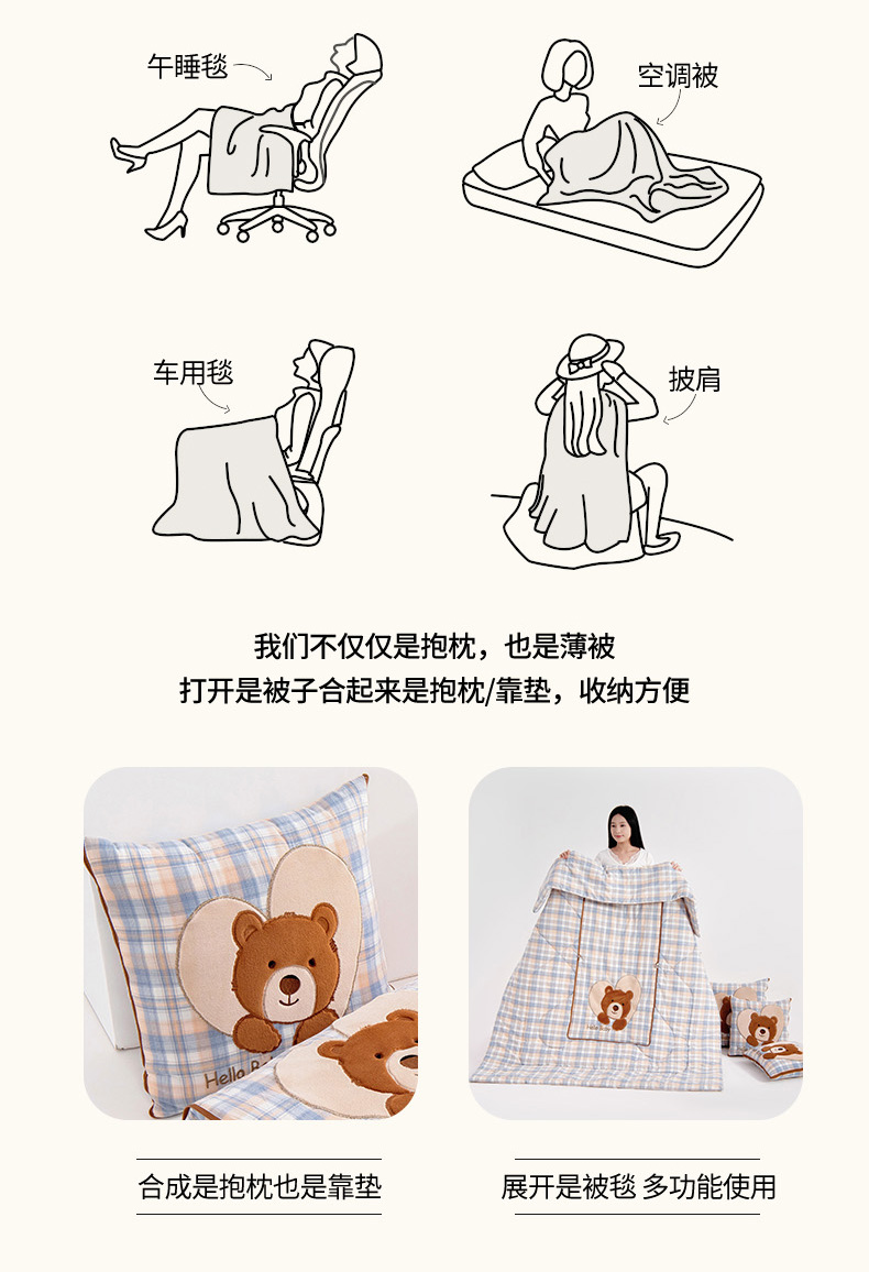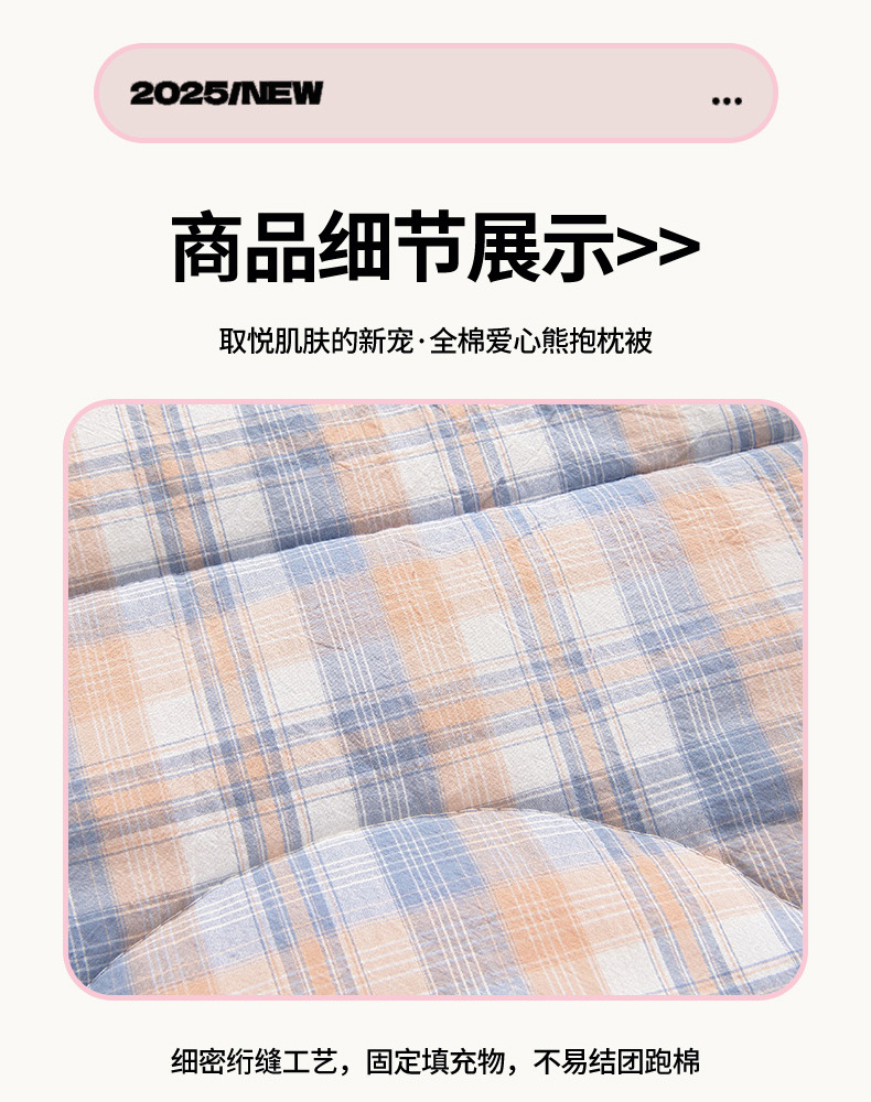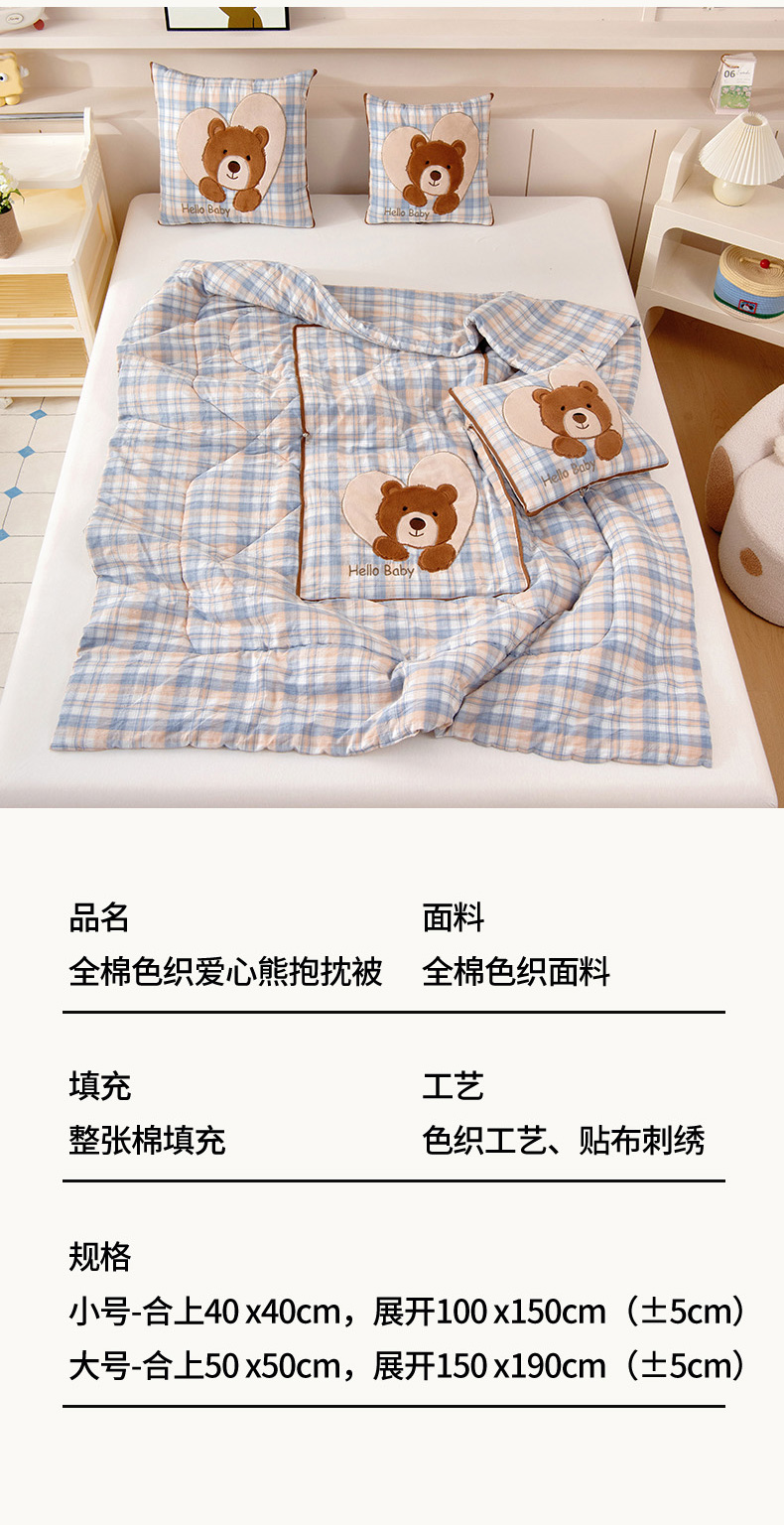 商品名称:阳光依佰抱枕被 2025新款全棉色织爱心熊抱抌被(控价小号券后不低于59元,大号不低于89元) 爱心熊一星空卡其