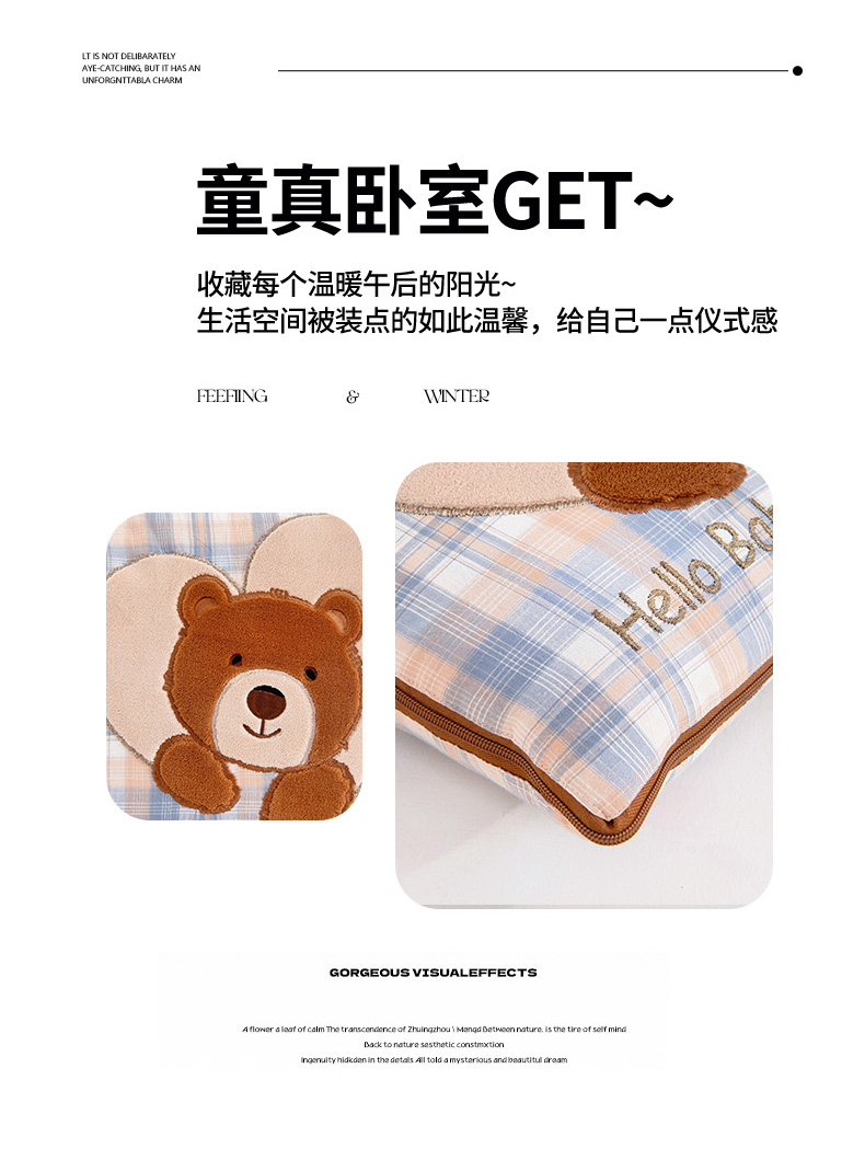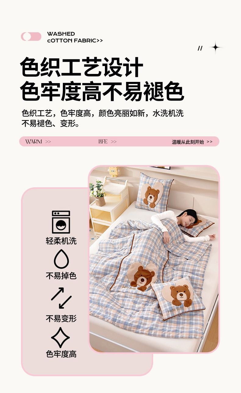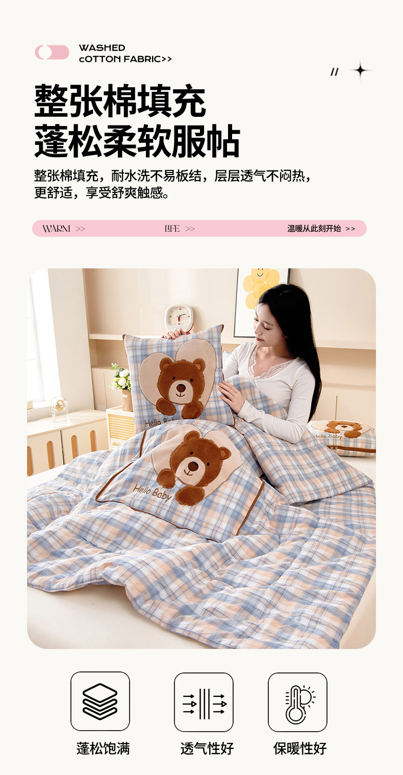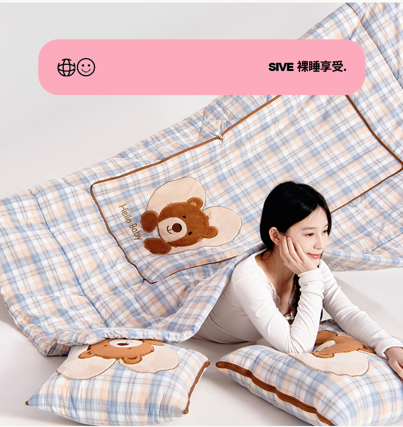 商品名称:阳光依佰抱枕被 2025新款全棉色织爱心熊抱抌被(控价小号券后不低于59元,大号不低于89元) 爱心熊一星空卡其