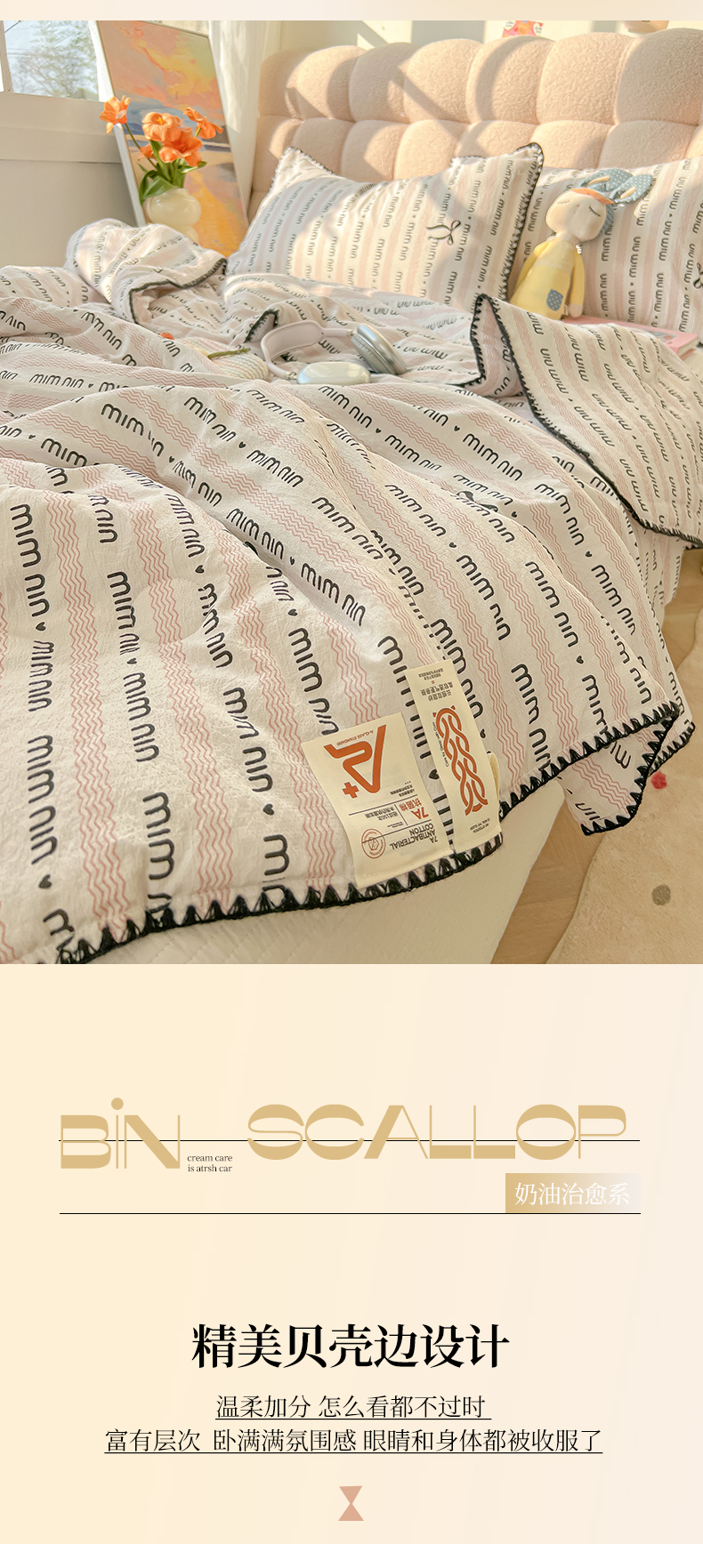 商品名称:韩巢家纺 2025夏季新款A类云感双层纱花边款夏被夏凉被空调被薄被子 贝壳边-韵味粉