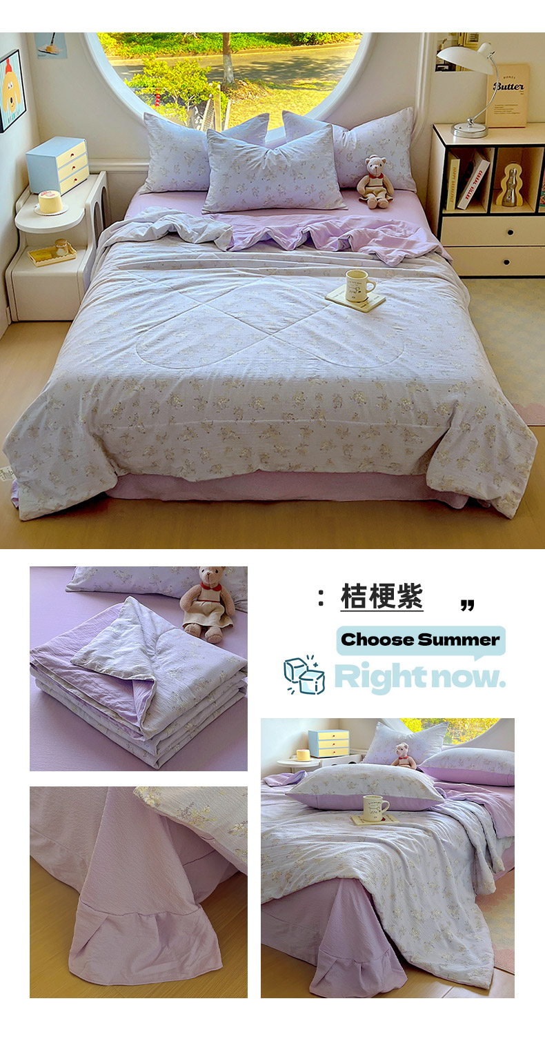 商品名称:金梦拉家纺 2025新款A类提花纱布双层纱夏被四件套 夏被-桔梗紫