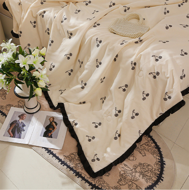 商品名称:薇玛仕 2025新款韩版宽边水洗棉大豆夏被赫本风亲肤柔软夏季薄被子 赫本-小樱桃