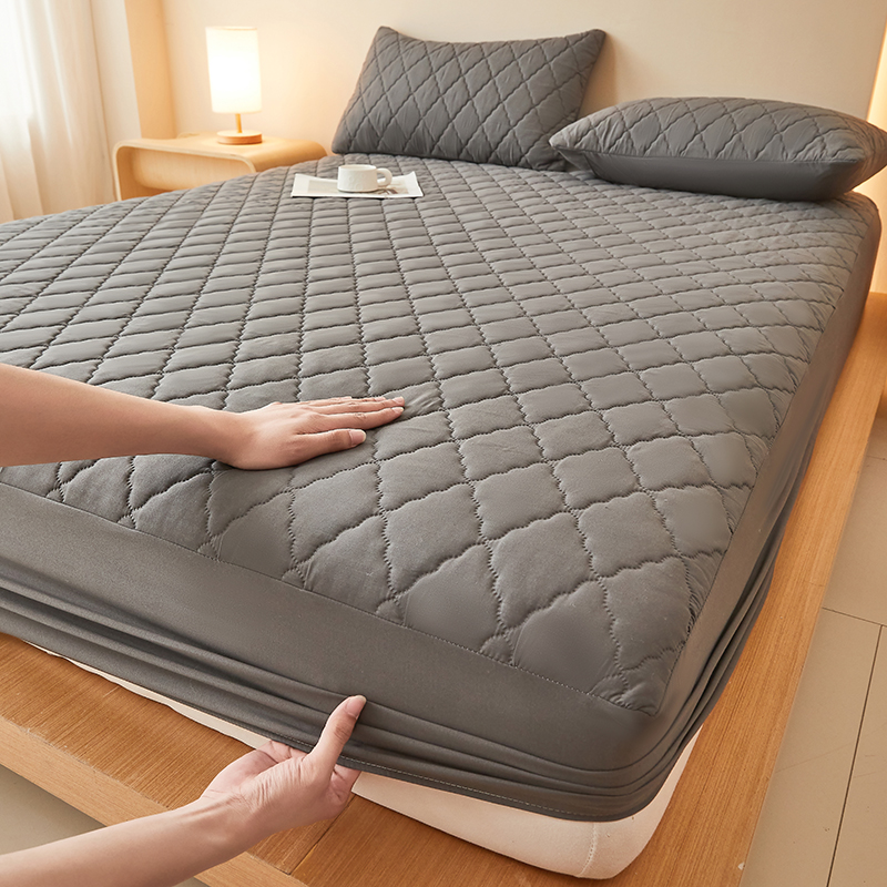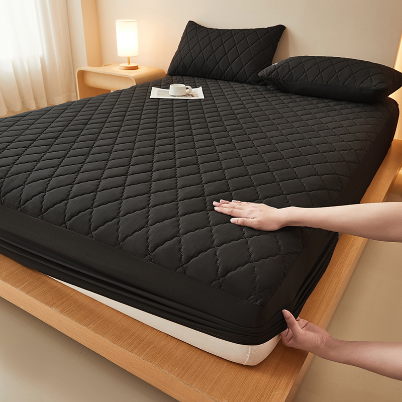 衿成家纺 2025新款跨境电商热款菱形格夹棉防水床笠支持大佬价跑量多尺寸可做-单床笠 L-黑色