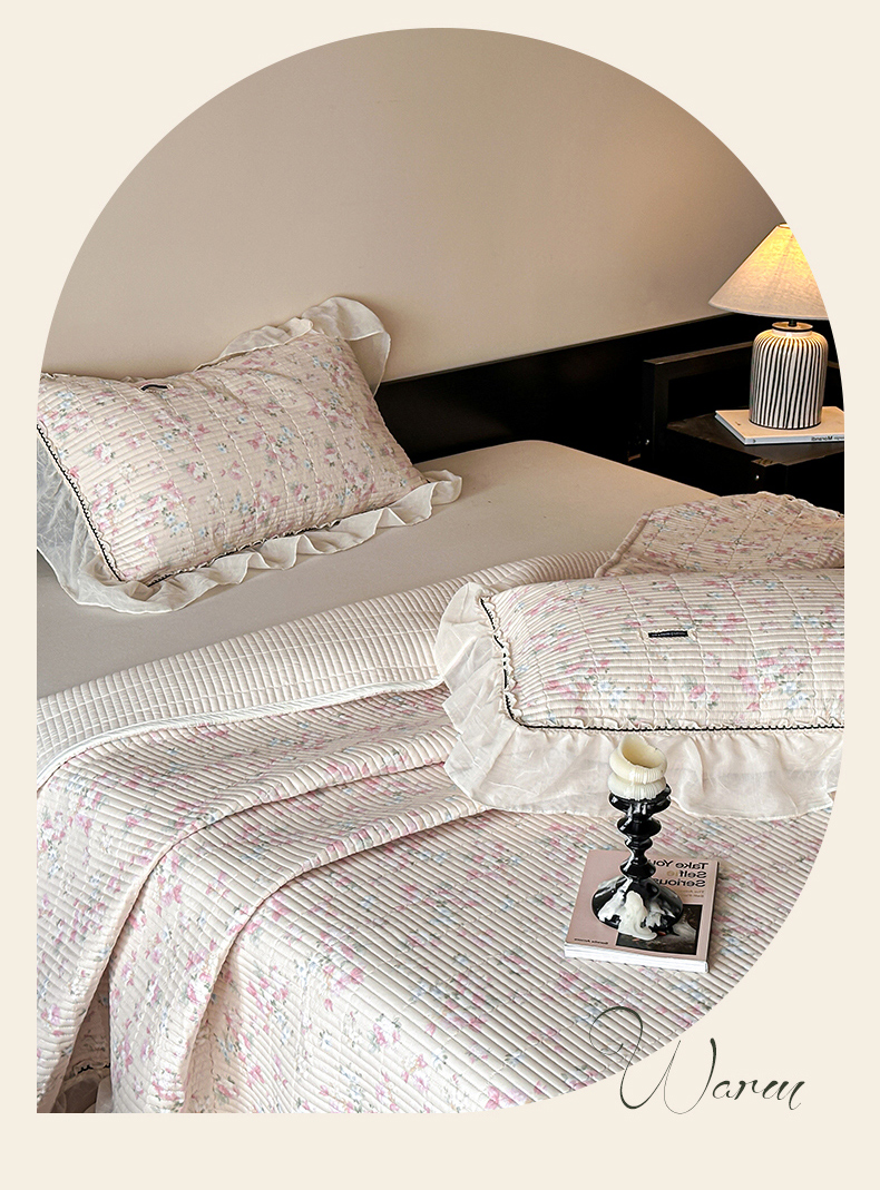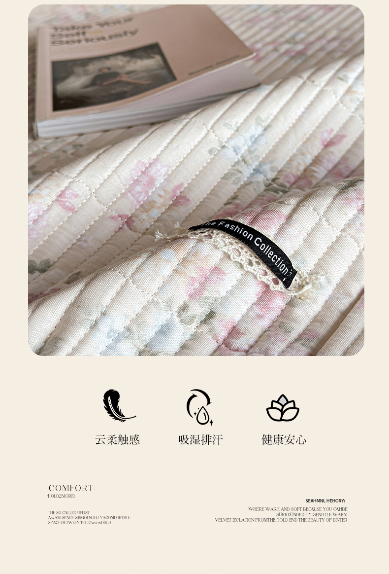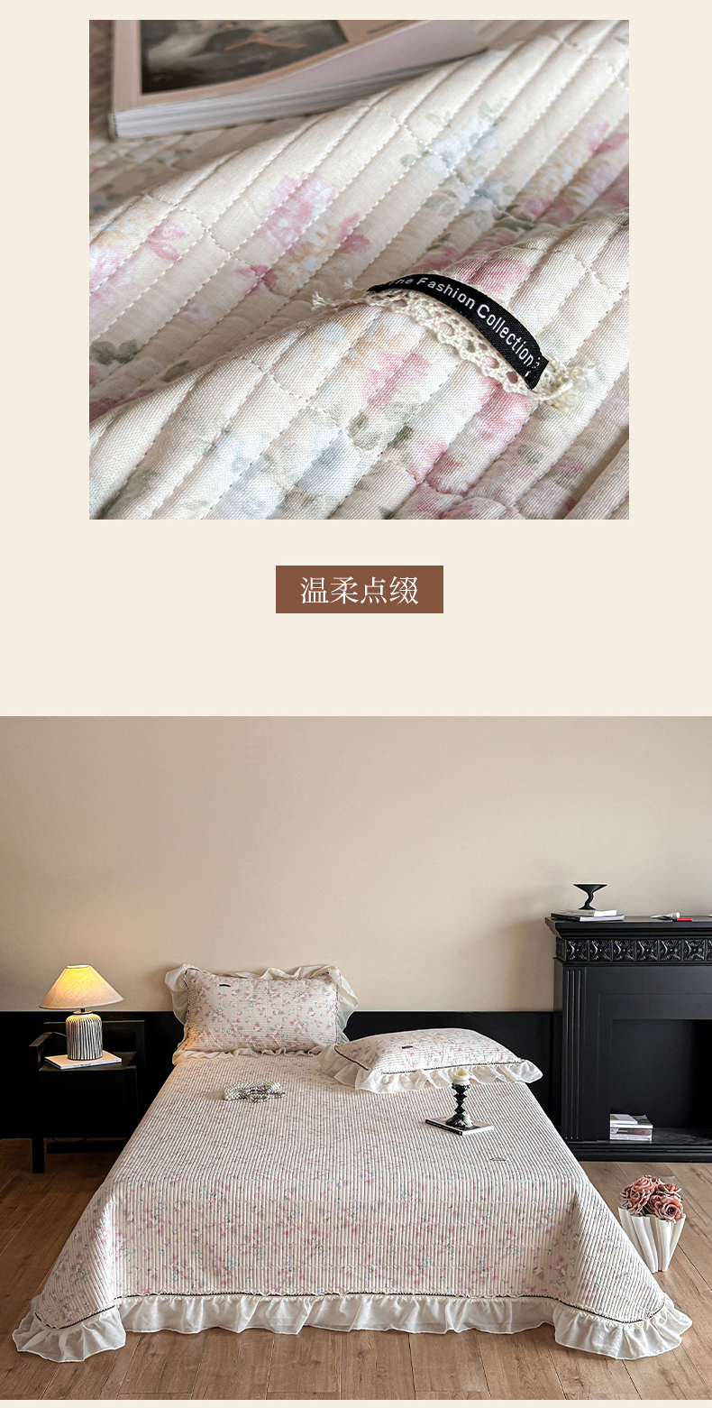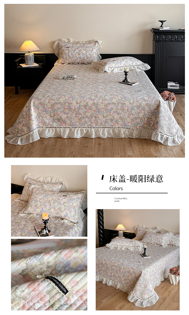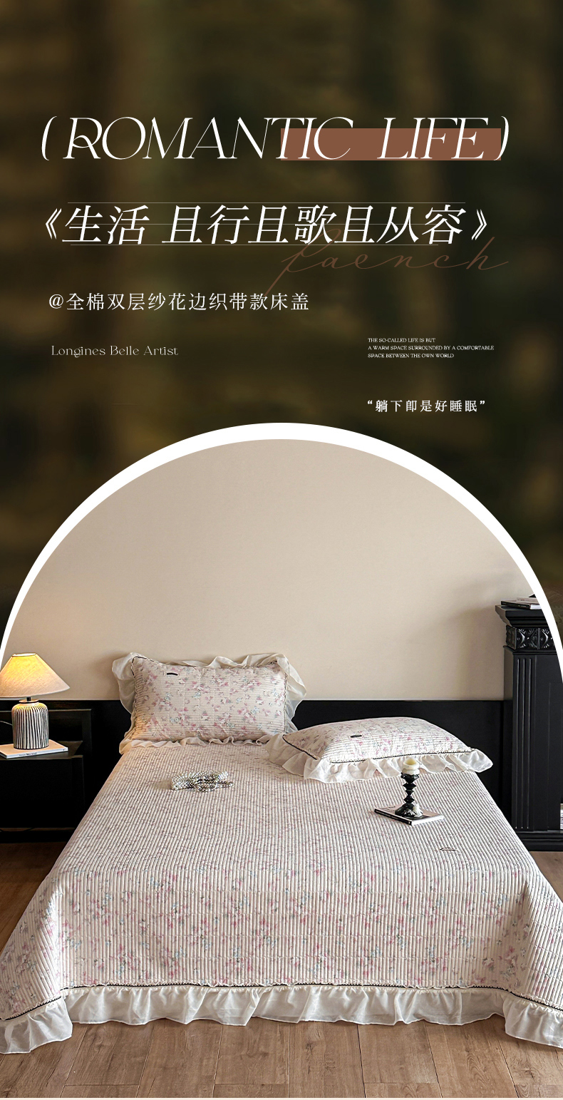 蓝邻家纺 2025春夏新款全棉纯棉双层纱织带款床盖-场景一 床盖-暖暖花香-黄