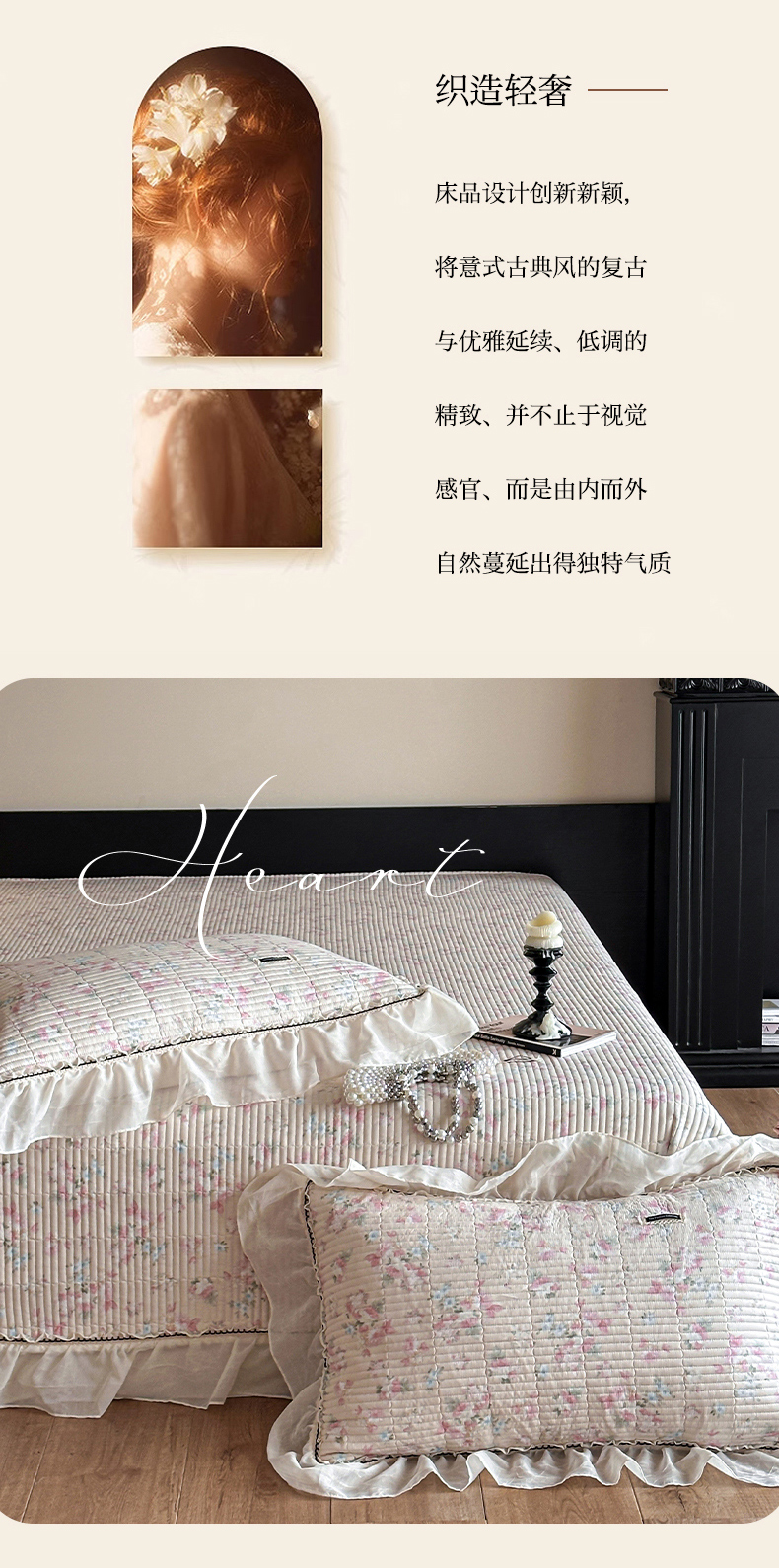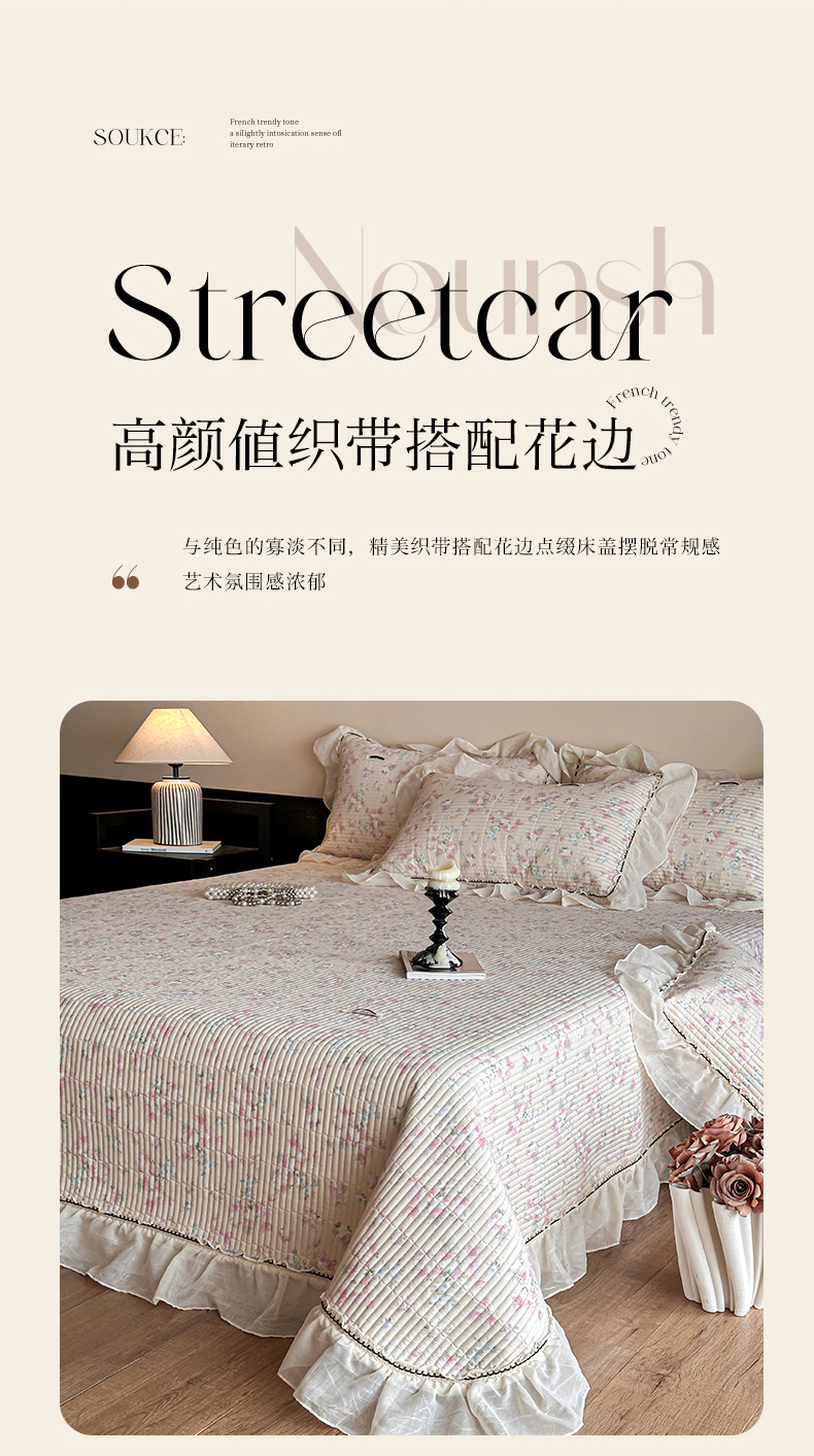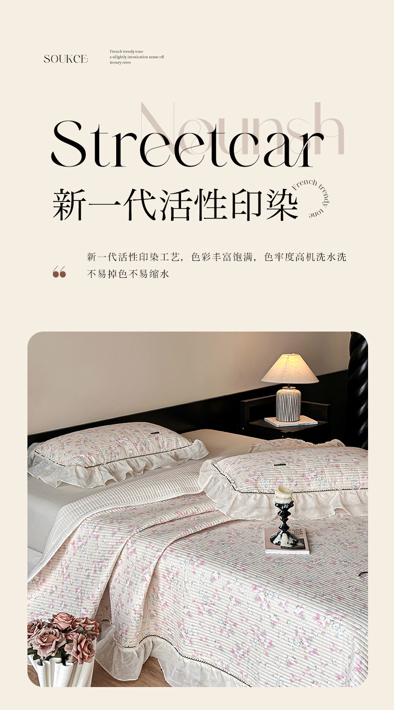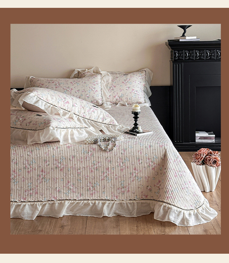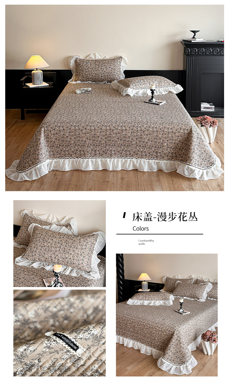 蓝邻家纺 2025春夏新款全棉纯棉双层纱织带款床盖-场景一 床盖-暖暖花香-黄