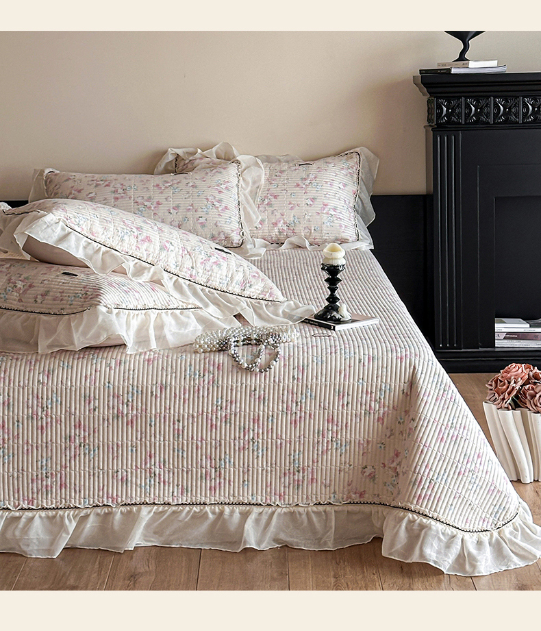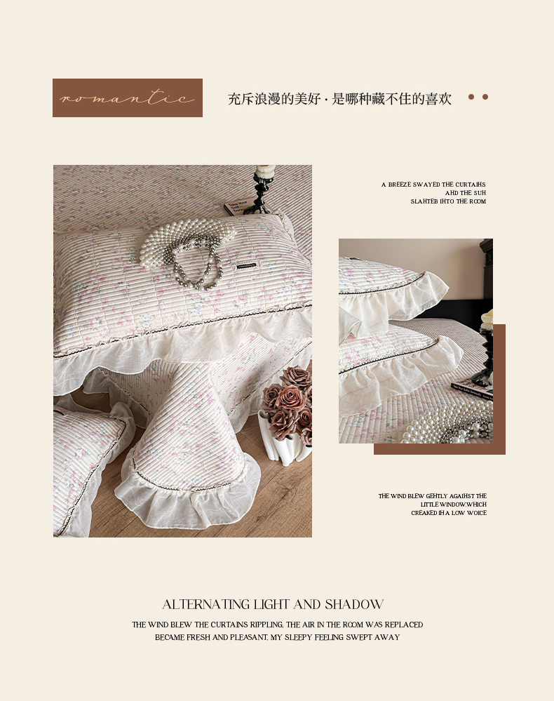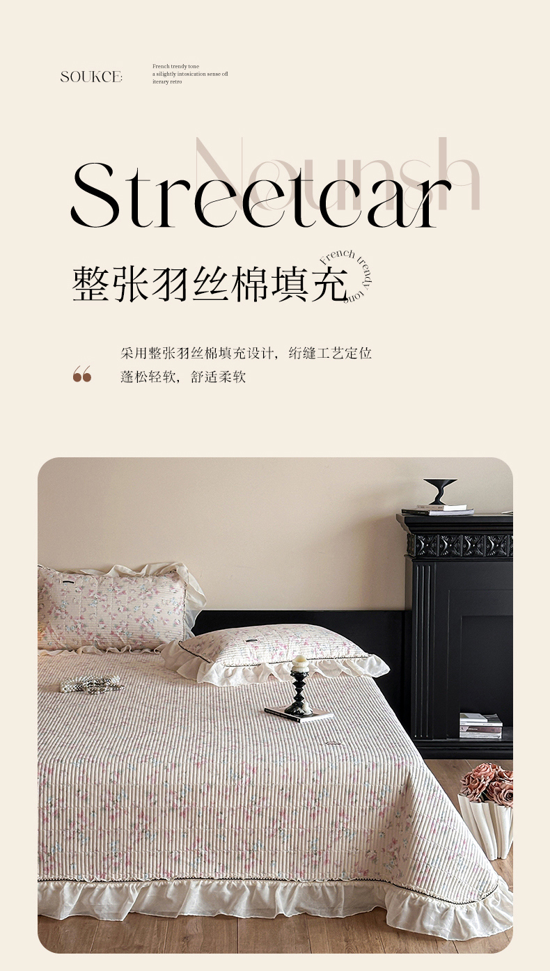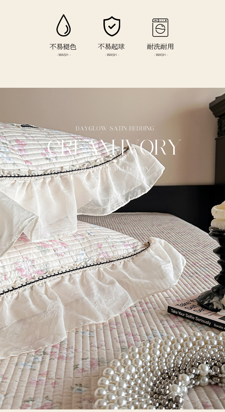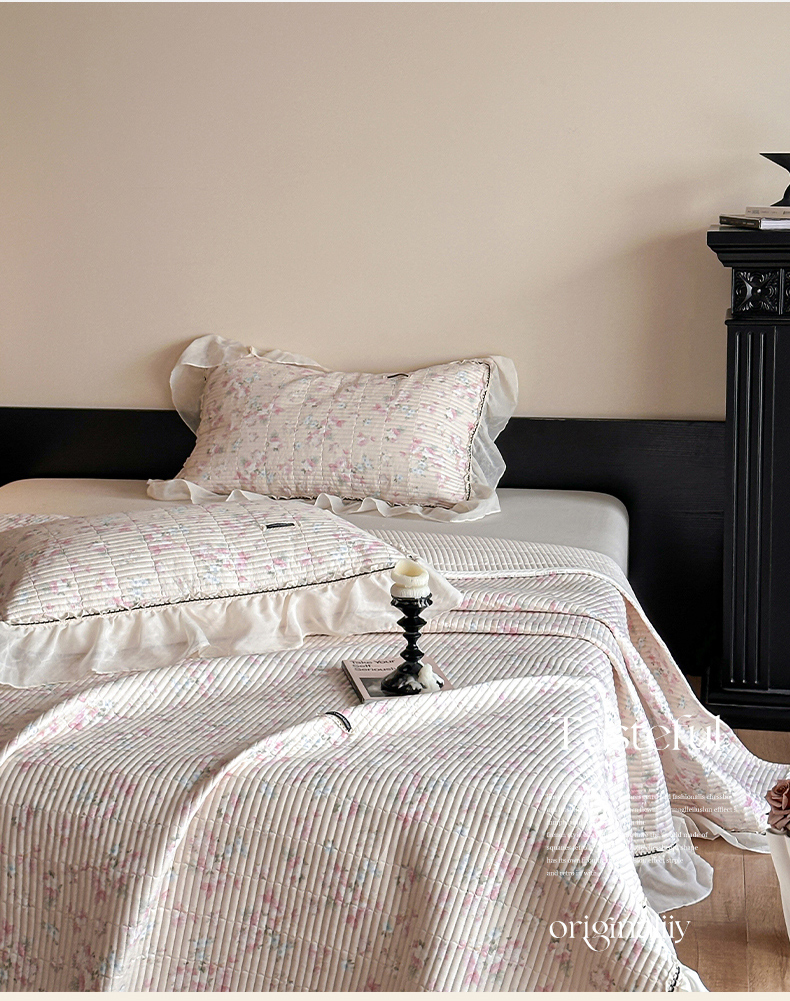 蓝邻家纺 2025春夏新款全棉纯棉双层纱织带款床盖-场景一 床盖-暖暖花香-黄