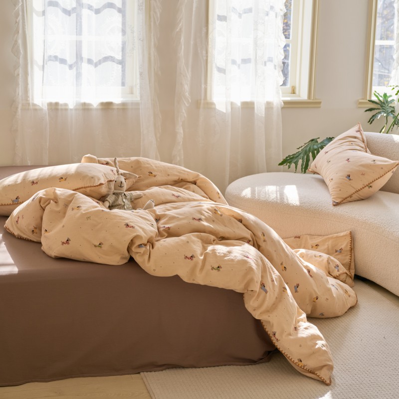 (总)洋铭区(原狠狠爱) 2026新款春季全棉彩边双层纱四件套,爱心宝莉,波斯小懒狗,繁花兔兔,格格小熊,海蓝小木马,红格小马,红枣小兔,花朵兔兔,焦糖小熊,兰花香,绿芽小马,萌宠小分队,奶茶蝴蝶结,奶糕熊熊,汽车派对,桃桃粉花,甜果小象,图图小狮子,幸运小可爱,熊猫嘟嘟,遇见粉花,月光宝宝