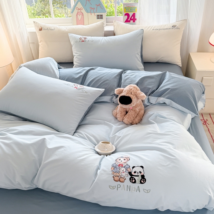 (总)雲归梦 2025春夏新款全棉纯棉刺绣潮熊学院派系列四件套,比尔熊,肯尼熊,穆赛熊,熊猫熊,学院熊,雅莱熊