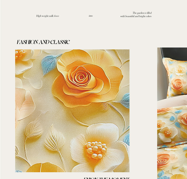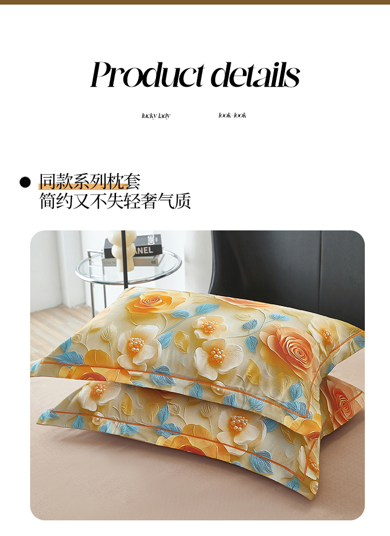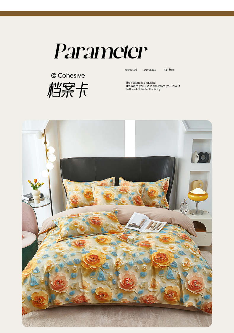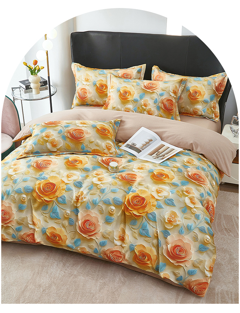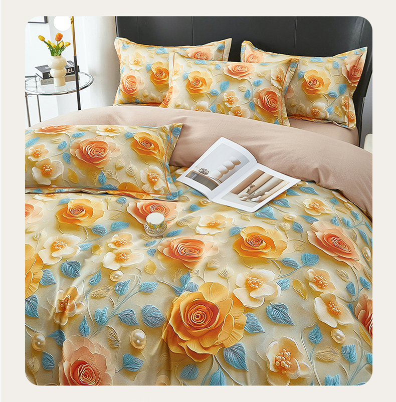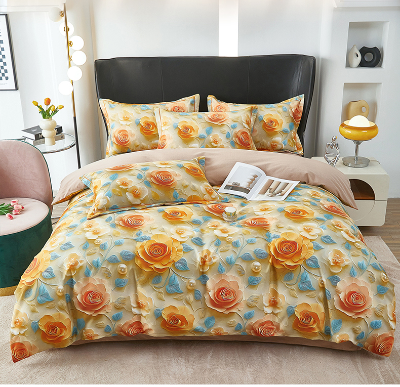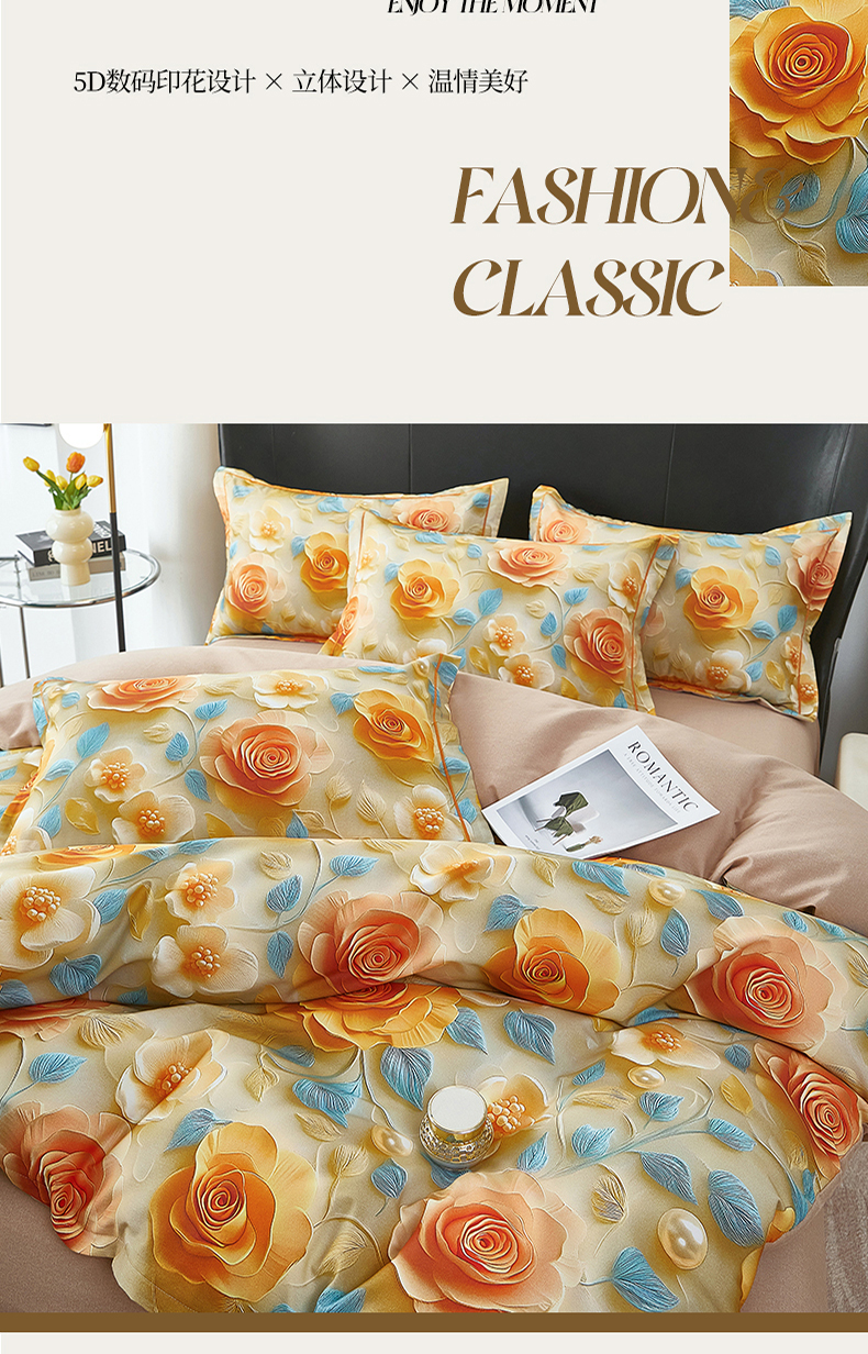 雲归梦 2025春夏新款全棉纯棉5D数码印花四件套 甜花香-桔