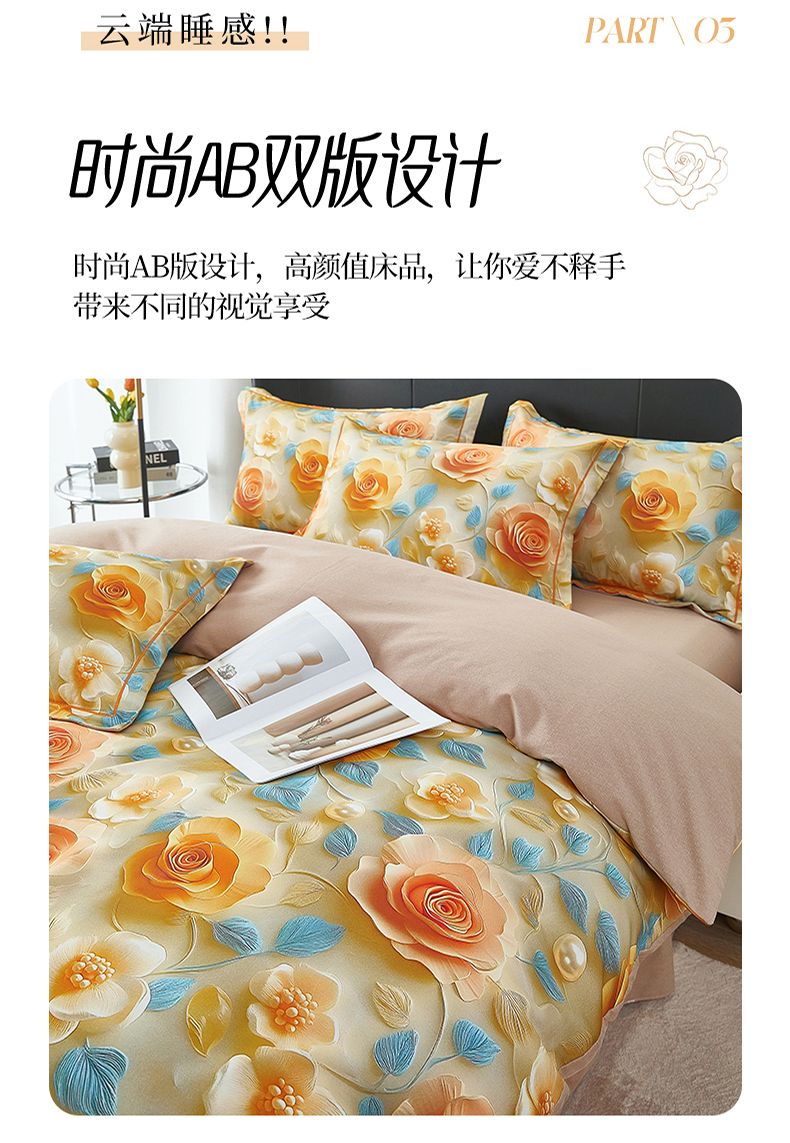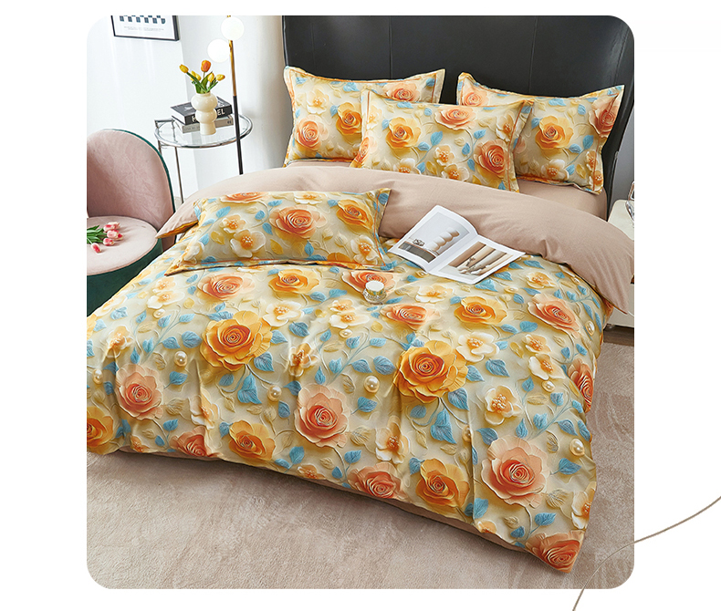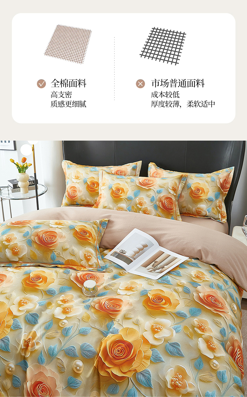 商品名称:雲归梦 2025春夏新款全棉纯棉5D数码印花四件套 甜花香-桔