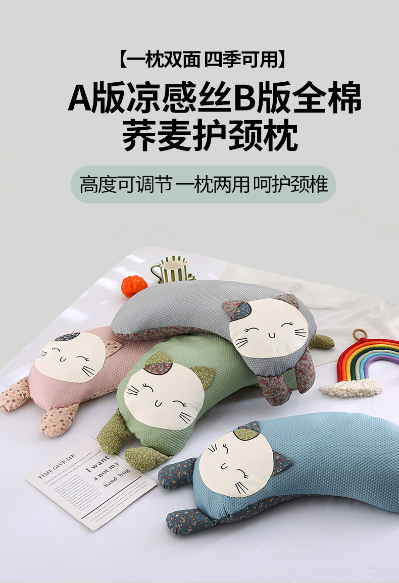 当前位置: 91家纺网 > 商品网购 > 婴童用品 > 婴童枕头/枕芯 > 蔻眠 2025可爱猫-凉感丝荞麦护颈枕头儿童卡通枕芯 灰色 30x65cm