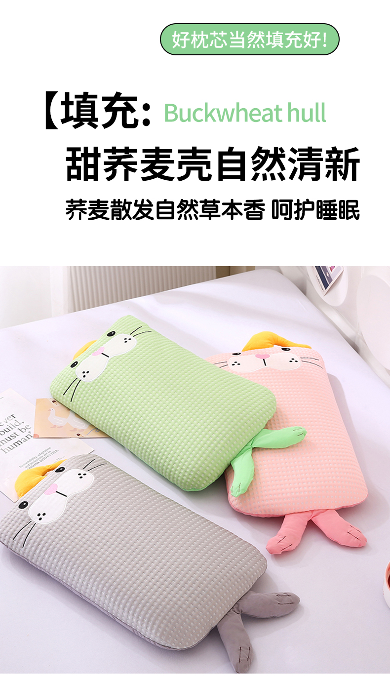 (总)蔻眠 2024新款可爱猫全棉儿童成人通用荞麦枕芯卡通枕头,粉色30x65cm,橘色30x65cm,咖色30x65cm,深蓝30x65cm,水绿30x65cm,天蓝30x65cm
