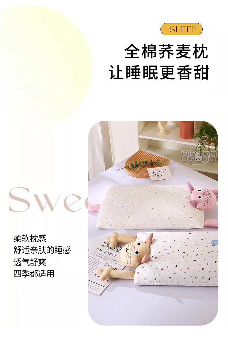 (总)蔻眠 2024新款开心猪全棉双层纱卡通儿童枕芯成人荞麦枕头,浅灰30x70cm,深粉30x70cm,天蓝30x70cm,玉色30x70cm,紫色30x70cm