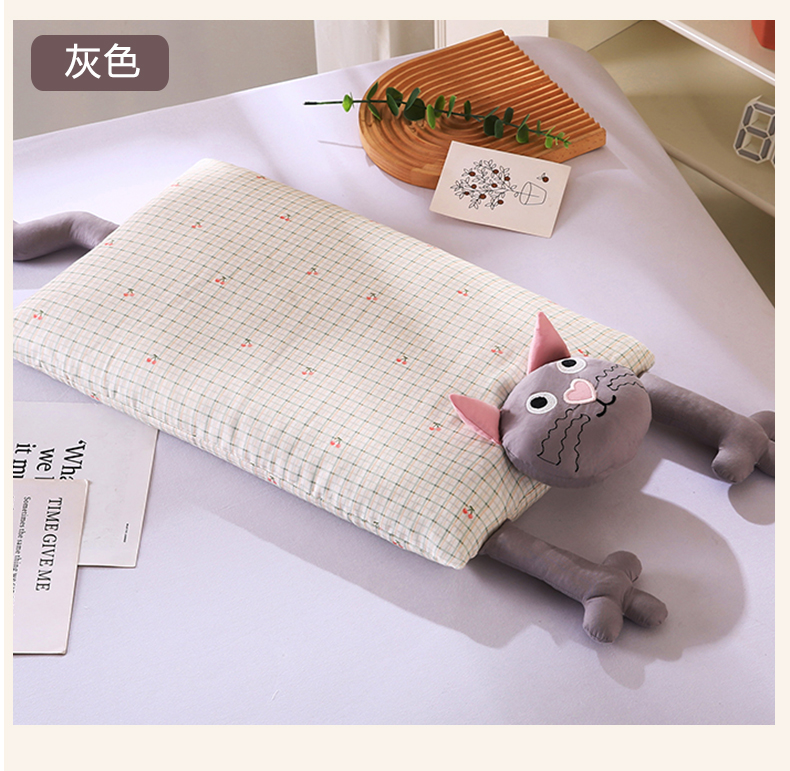 商品名称:蔻眠 哇噻猫-全棉双层纱甜荞麦枕芯卡通儿童学生成人护颈枕 哇噻猫-粉色