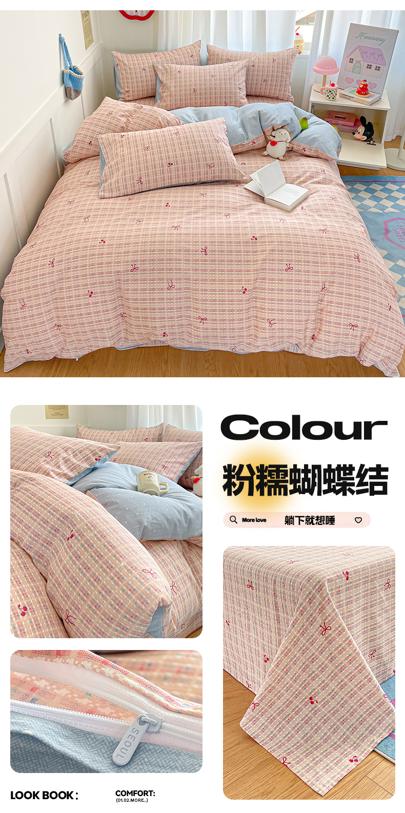 商品名称:首尔家纺 2025新款学生季全棉跑量款四件套系列卡通小清新AB版学生三件套 粉糯蝴蝶结