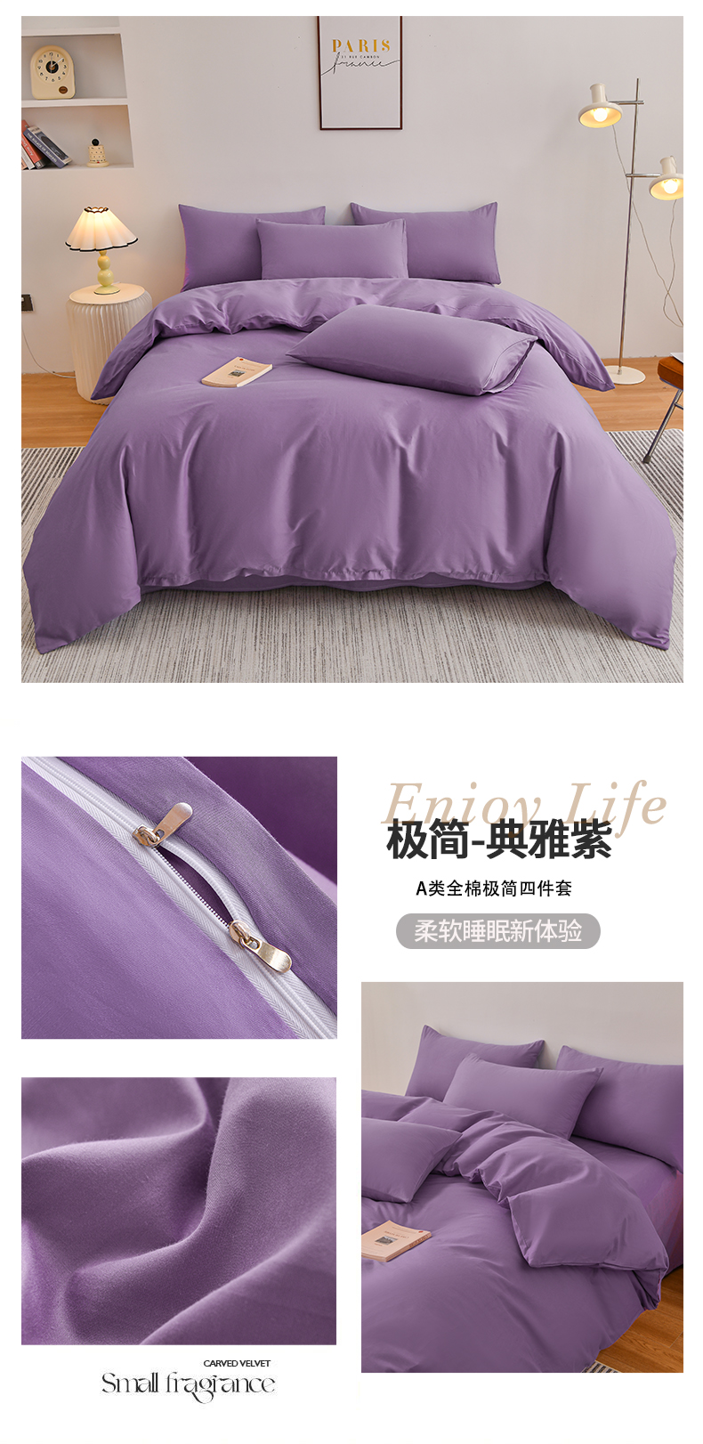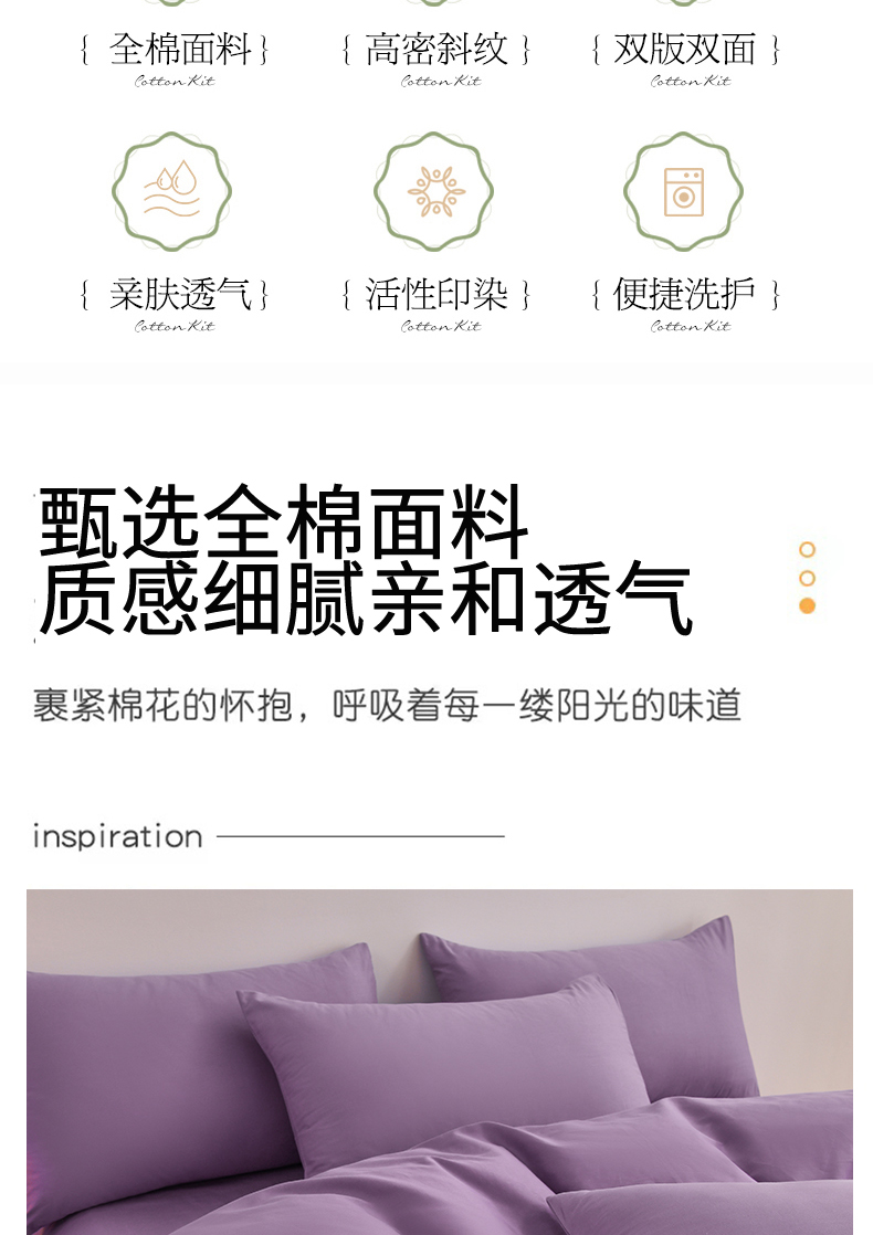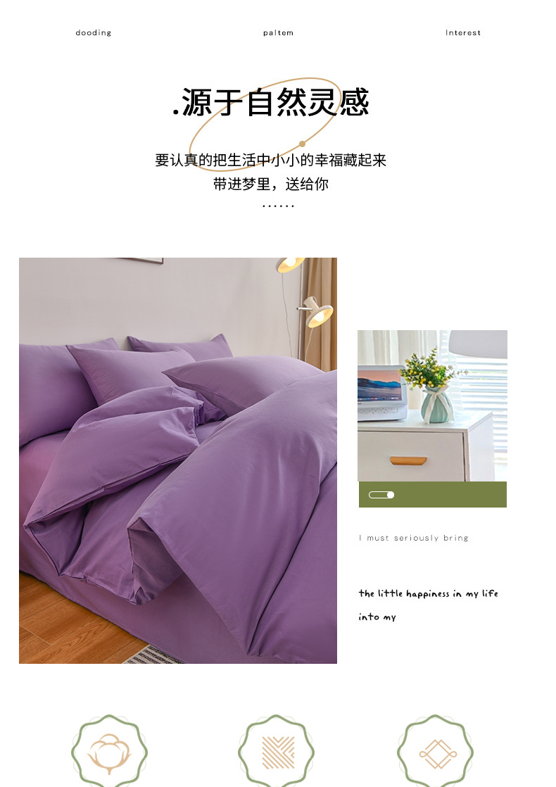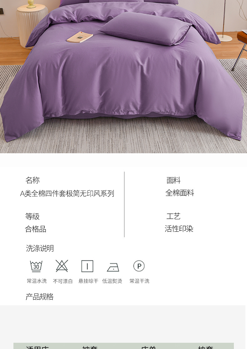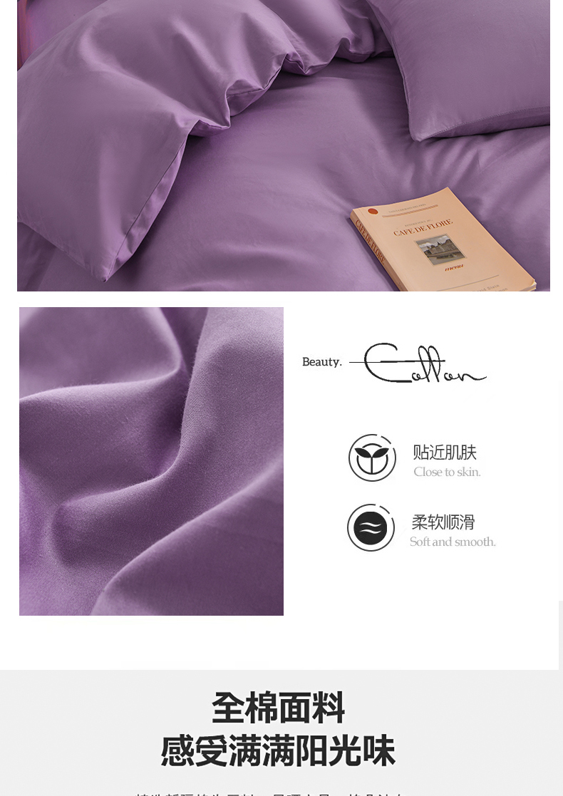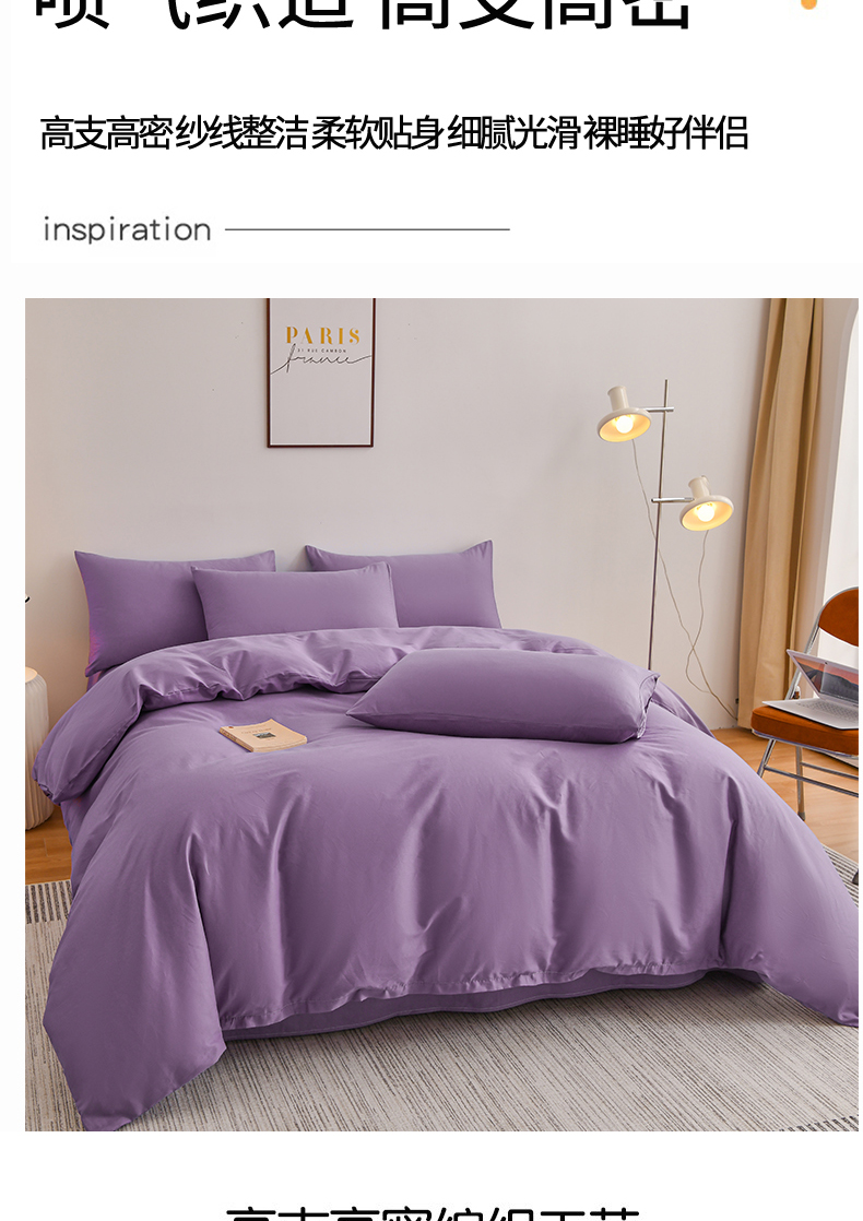 商品名称:宇彬家纺 2025新款13374全棉纯棉母婴级简约轻奢小清新纯色单被套 极简-典雅紫