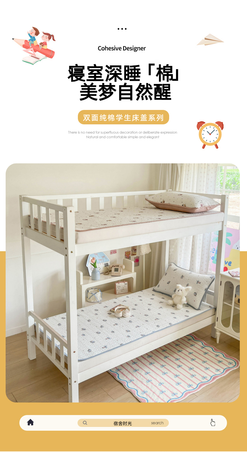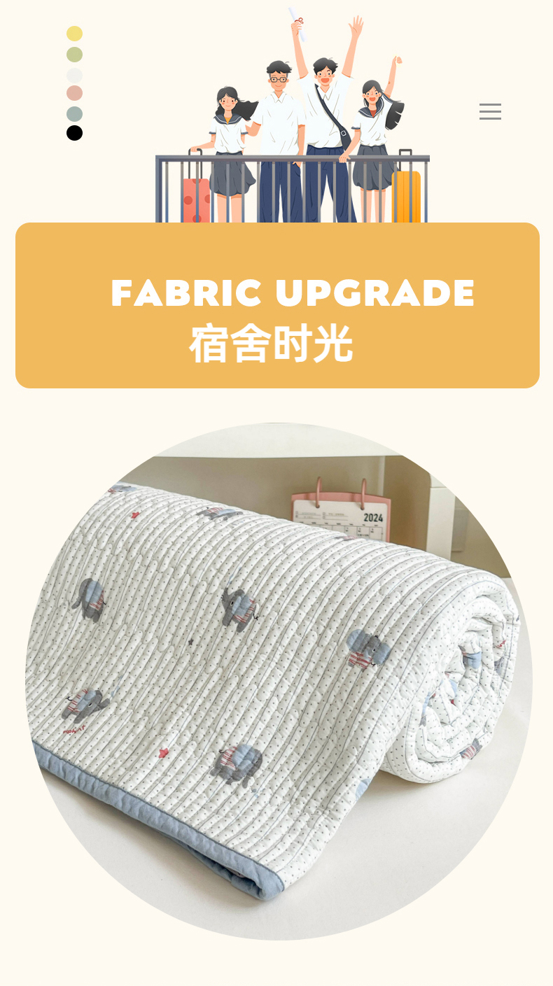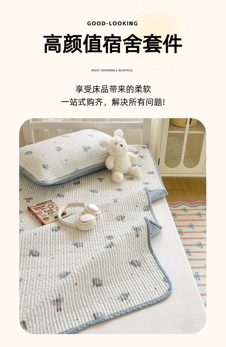 茉夕家纺 2025新款双面纯棉学生宿舍床盖系列 跳跳象