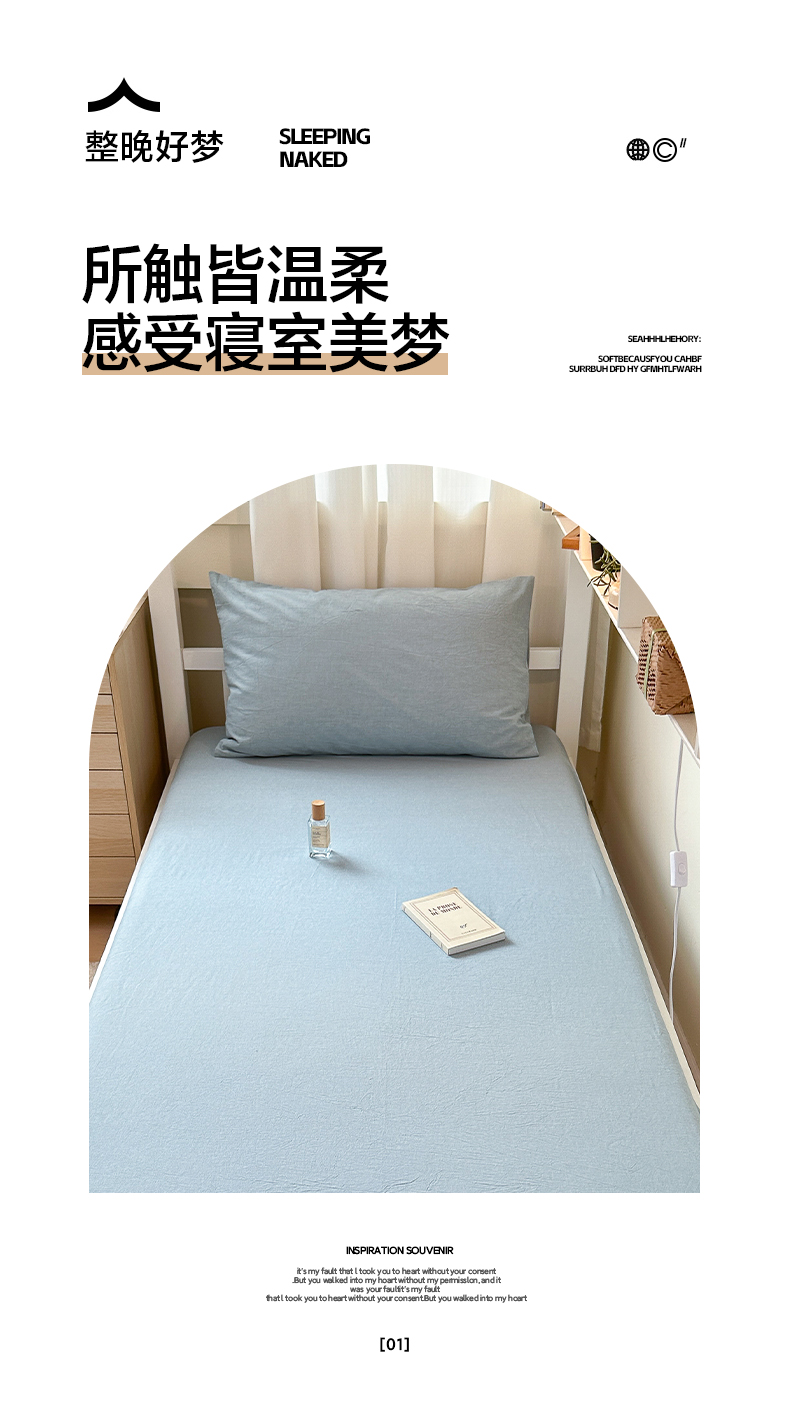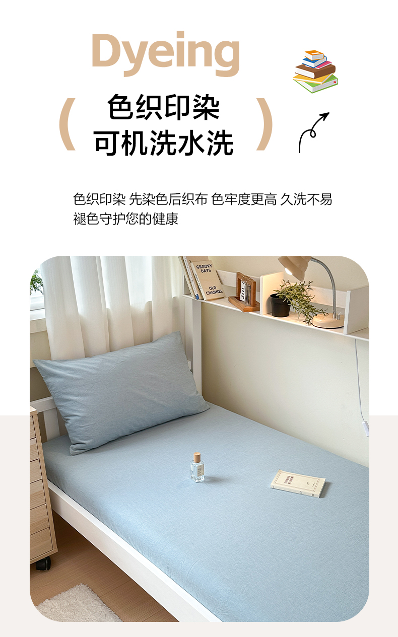 (总)全棉无印色织水洗棉提花四件套良品纯棉日式简约学生三件套,淡雅白,卡其色,抹茶绿,肉桂黄,深灰色