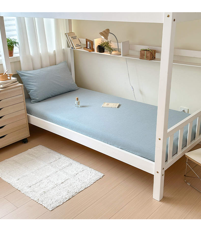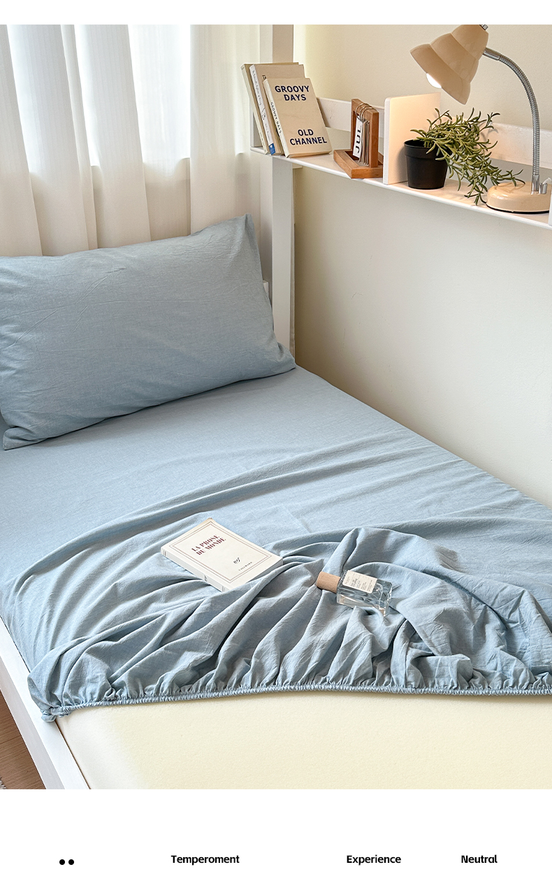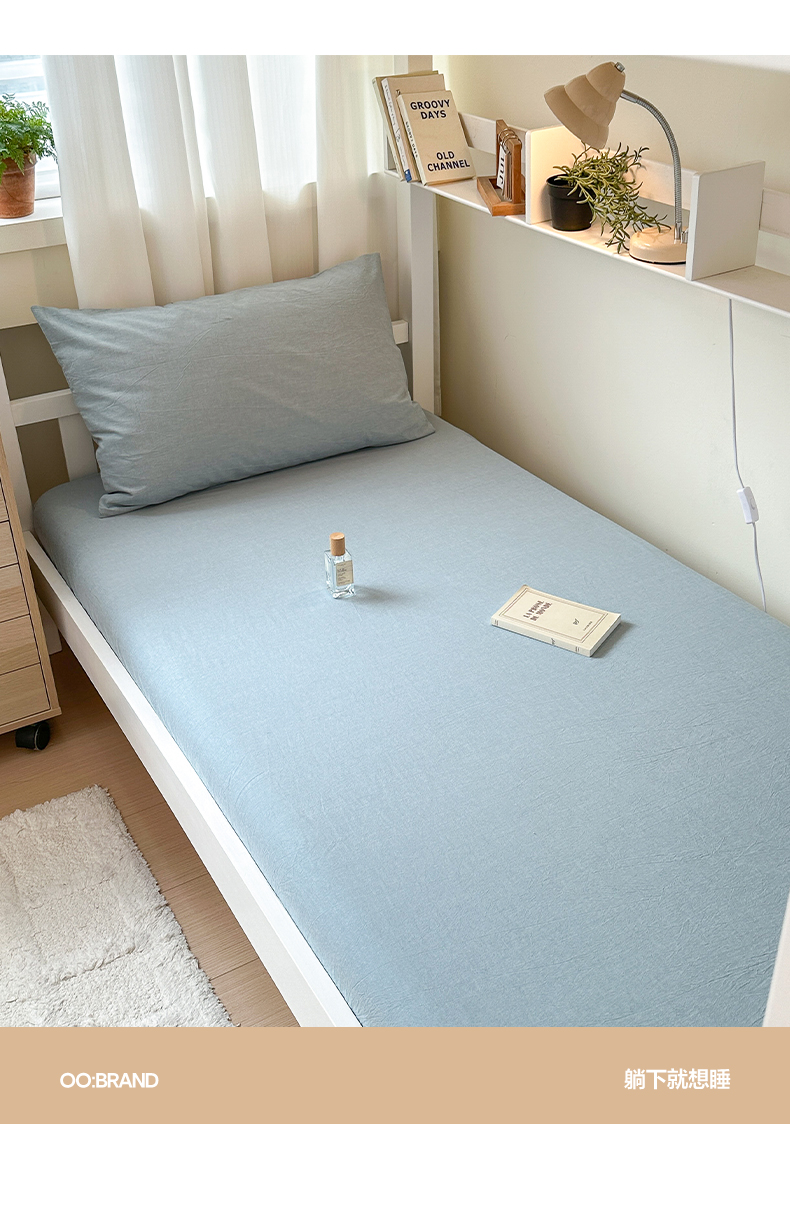 玖弘家居 2025新款全棉色织水洗棉床笠系列 浅蓝