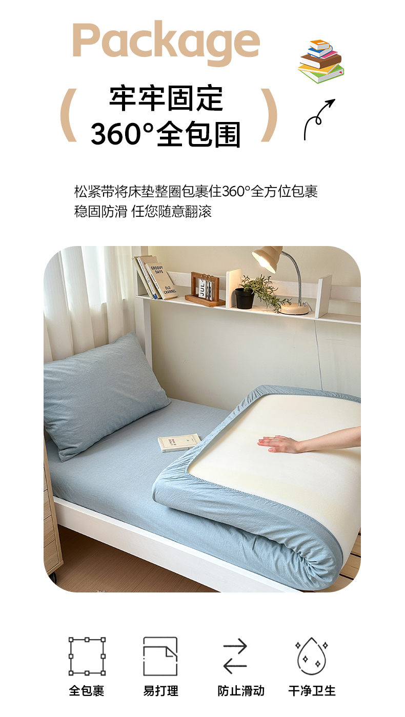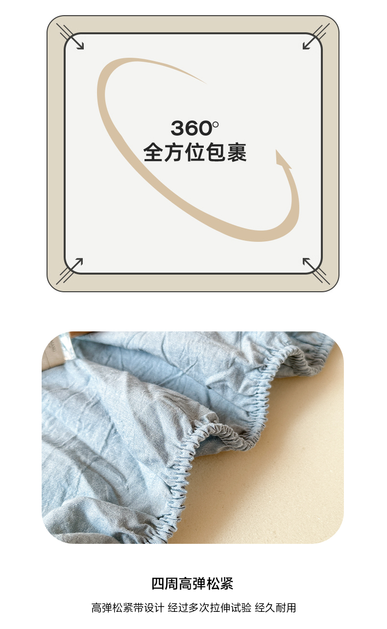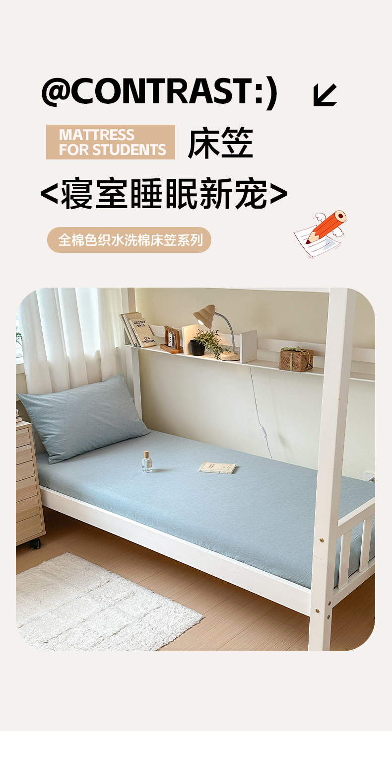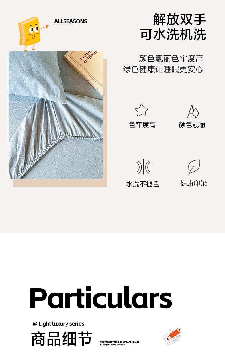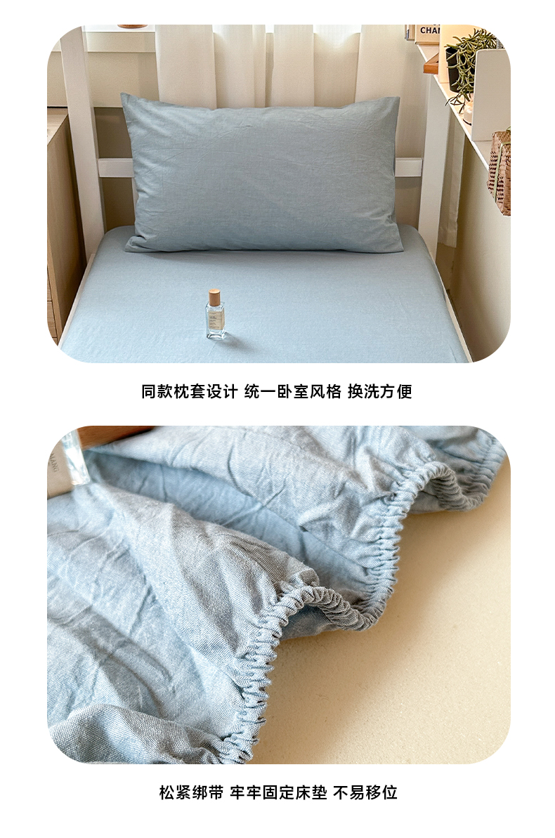 商品名称:玖弘家居 2025新款全棉色织水洗棉床笠系列 浅蓝
