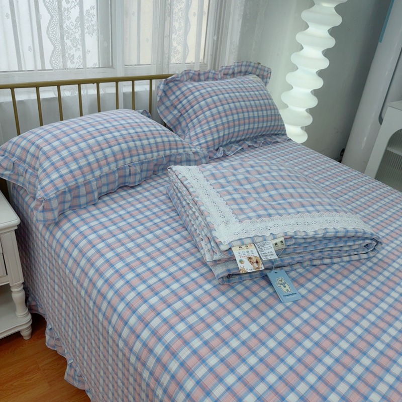 商品名称:暖居 2025新款全棉水洗棉床盖三件套可配同款被套同款多功能夏被四季通用 紫小格