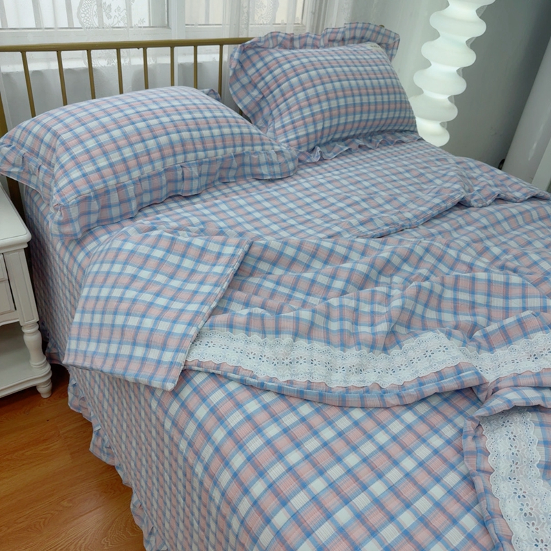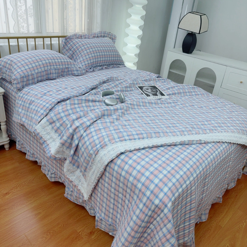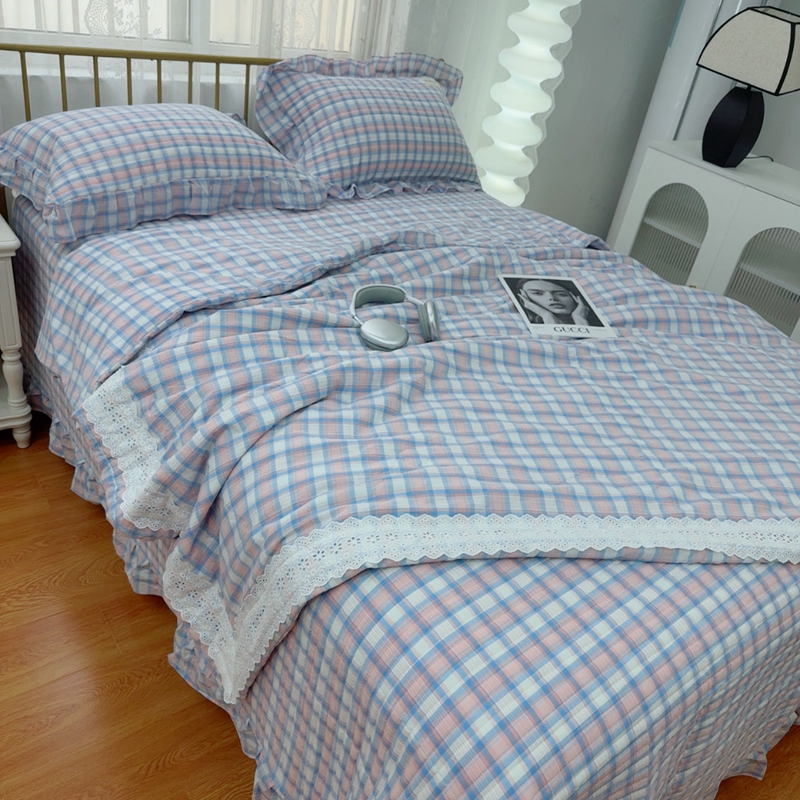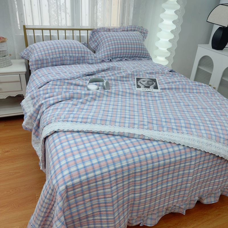 暖居 2025新款全棉水洗棉床盖三件套可配同款被套同款多功能夏被四季通用 紫小格