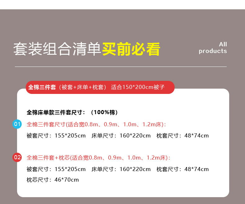 【床单款】1.2m床三件套-被套155X205cm | ¥74.00 |