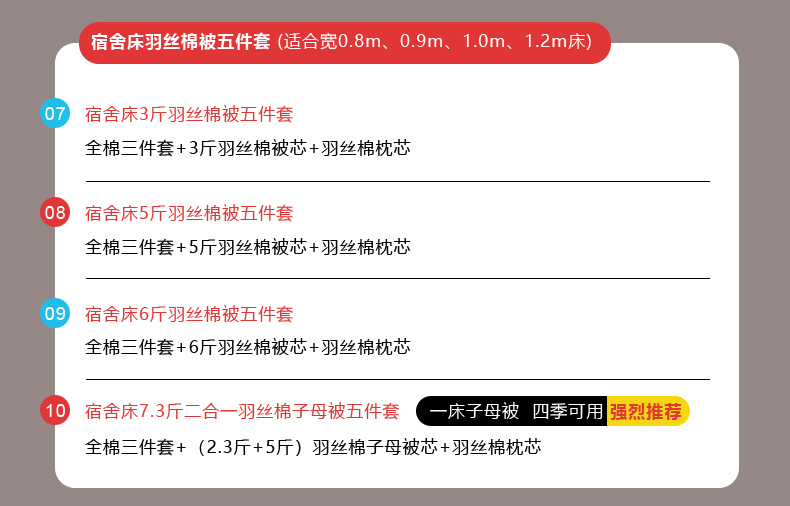 【床单款】0.9m床7.3斤羽丝棉子母被五件套 | ¥173.00 |