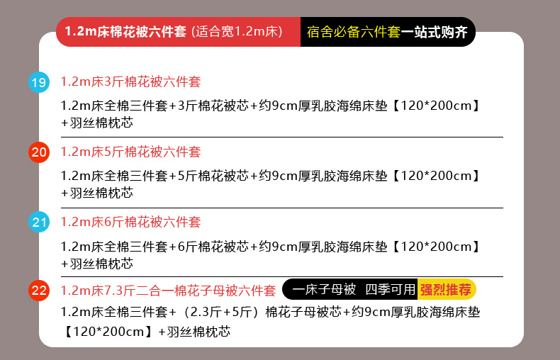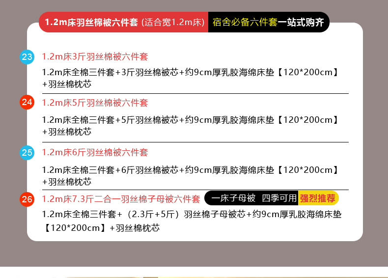 【海绵床垫床单款】1.2m床7.3斤羽丝棉子母被六件套 | ¥283.00 |
