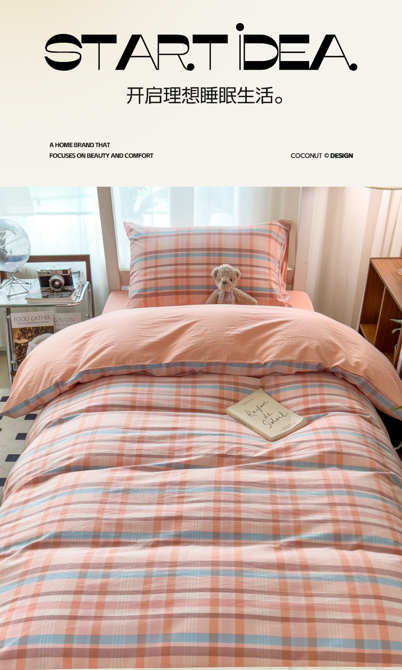 商品名称:宝士康家纺 2025春夏新款简约水洗棉学生三件套宿舍三件套上下铺三件套套件学生六件套套件(床单款) 英伦粉