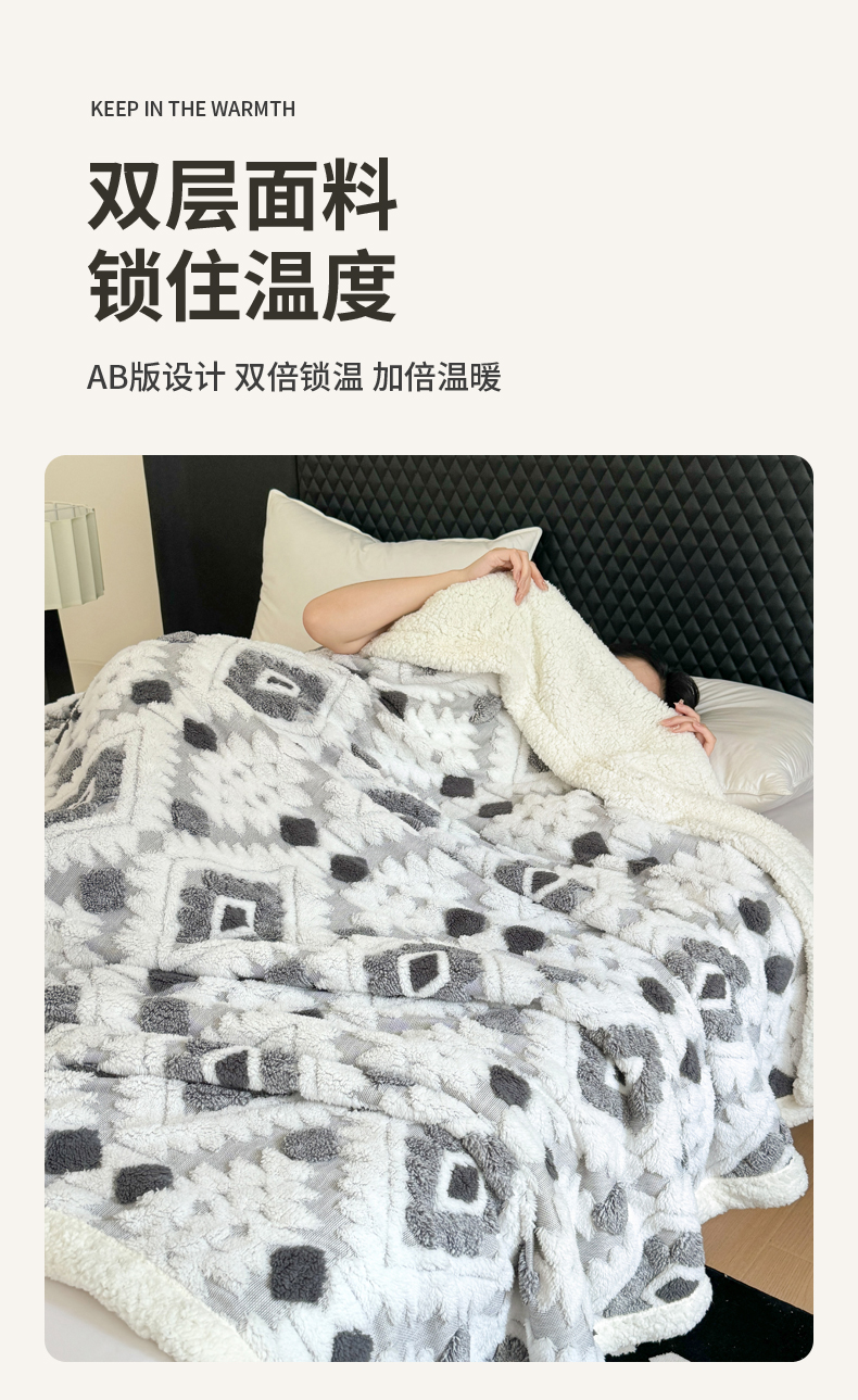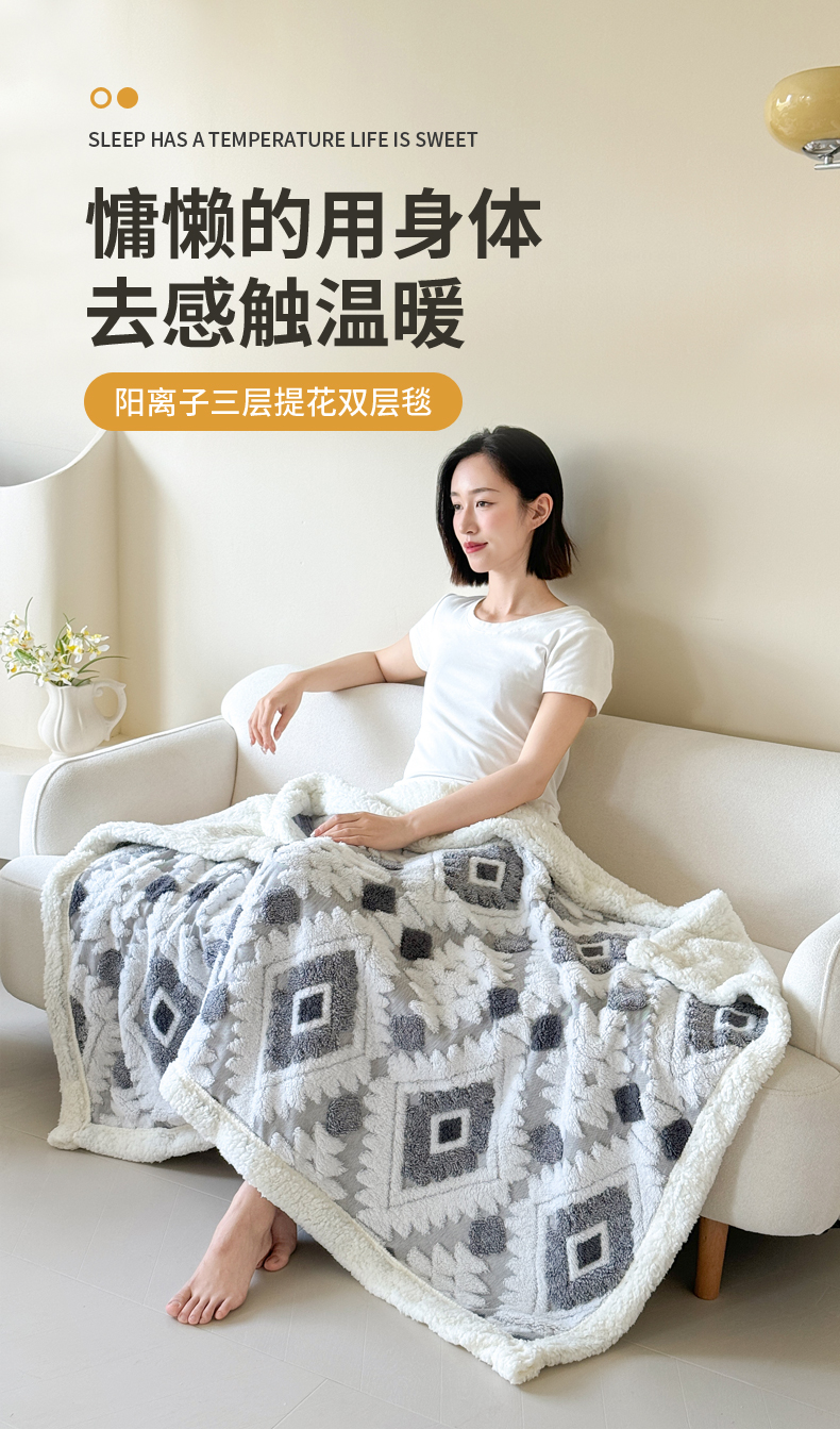 丹本家纺 2025新款轻奢阳离子提花镂空塔芙绒羊羔绒保暖午睡双层毛毯办公室盖毯 灰色