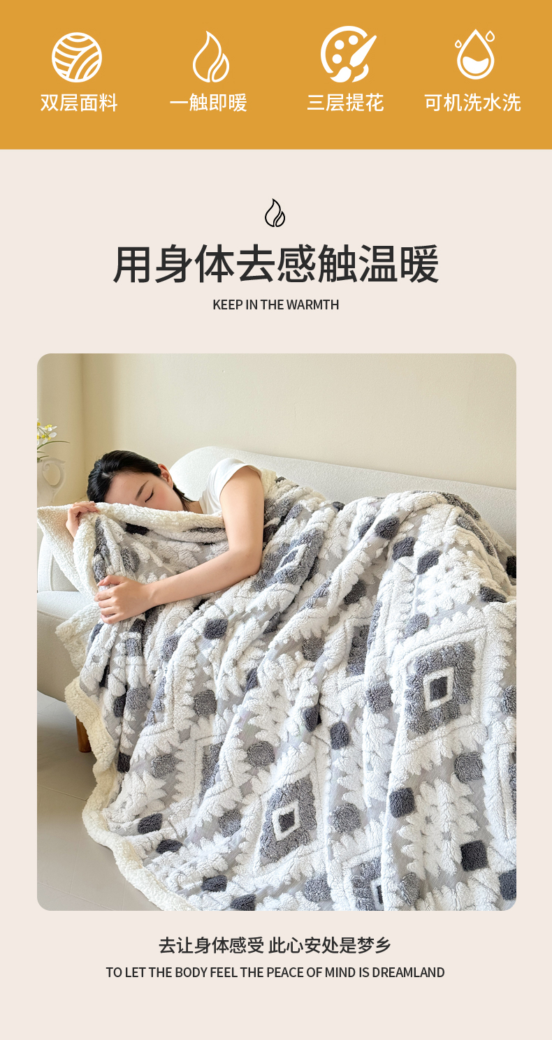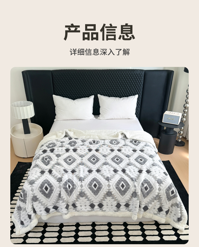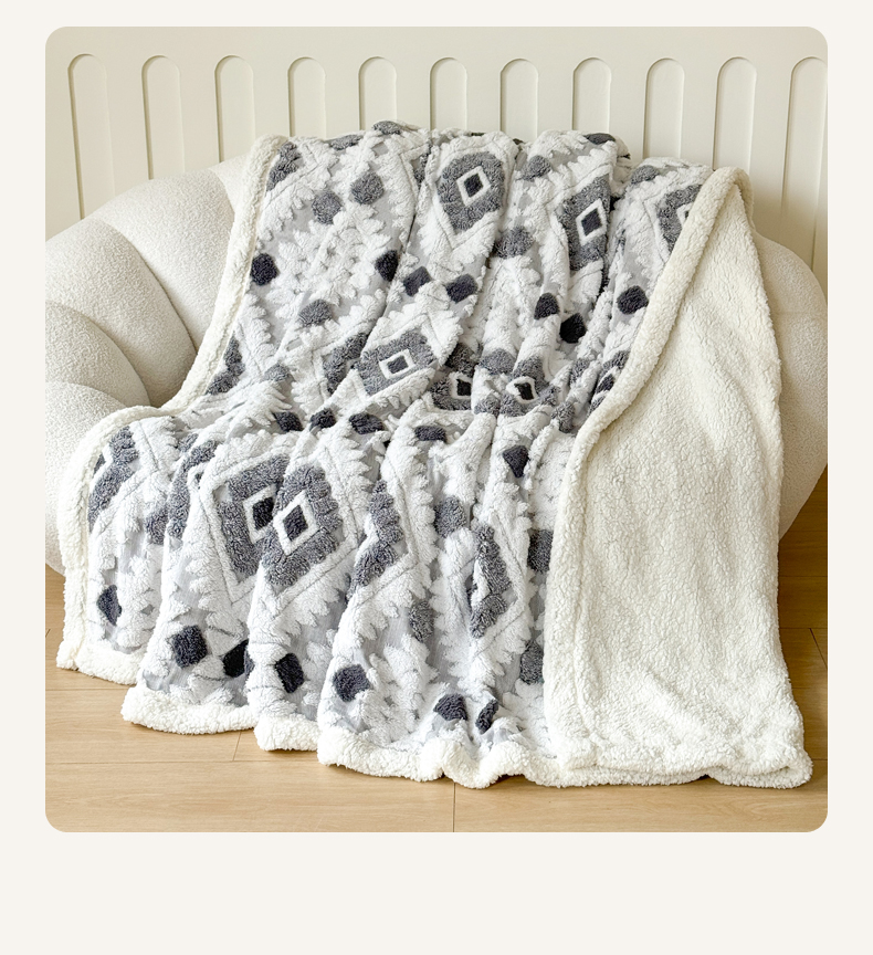 商品名称:丹本家纺 2025新款轻奢阳离子提花镂空塔芙绒羊羔绒保暖午睡双层毛毯办公室盖毯 灰色