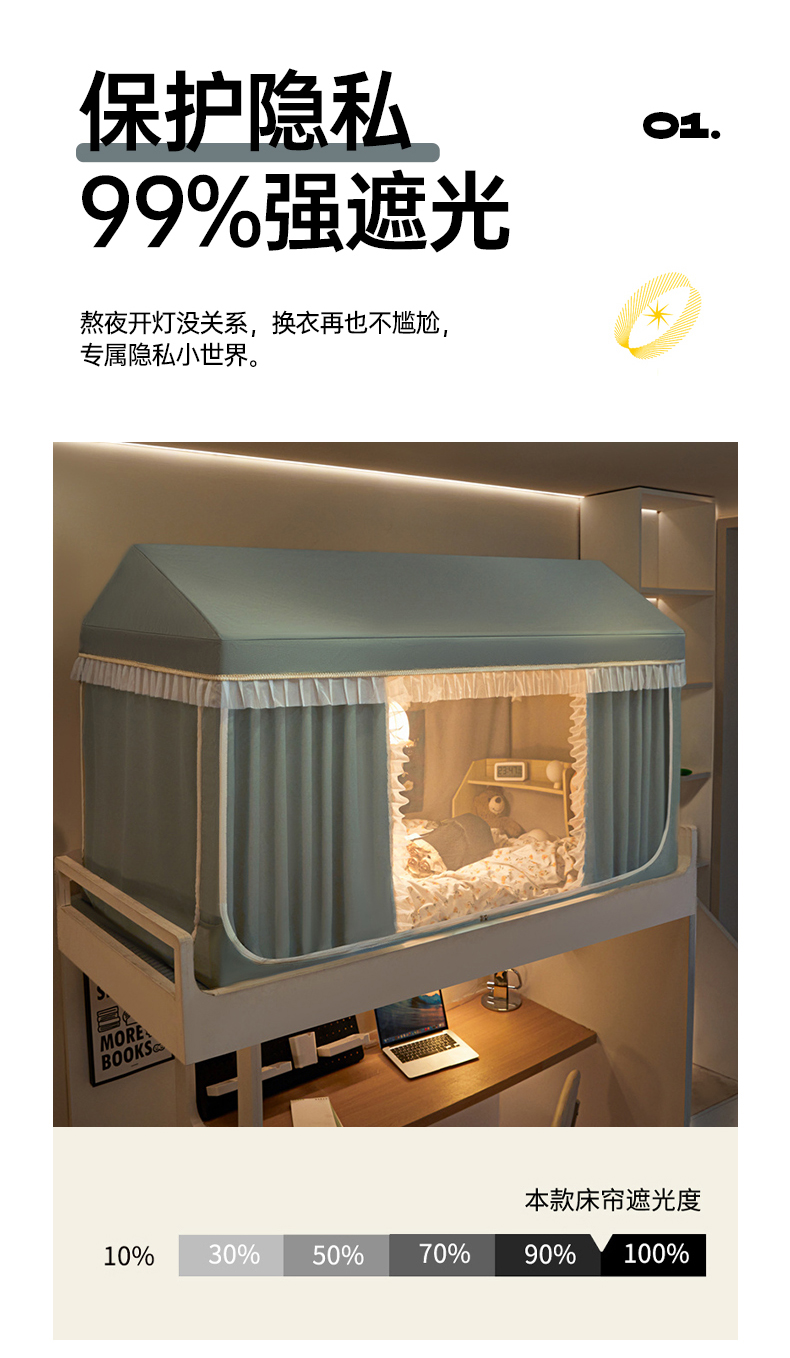 飞轮海蚊帐 2025新款强遮光防蚊学生蚊帐-XZ-99(靠墙帘选配)熊猫宝,熊猫宝