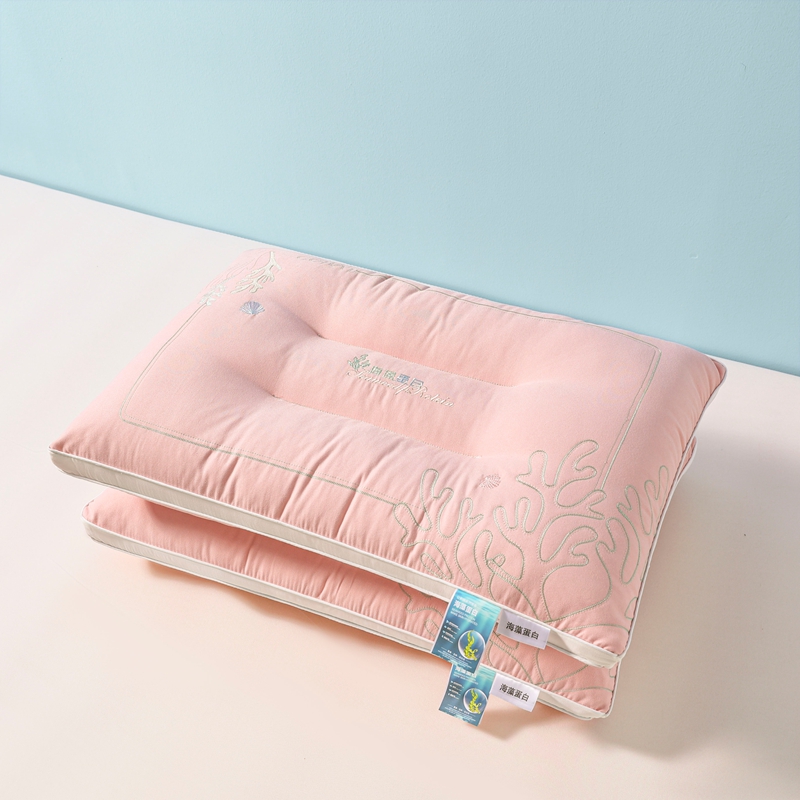 商品名称:轩琪家纺 2025新款刺绣海藻蛋白枕头枕芯 粉色 800克