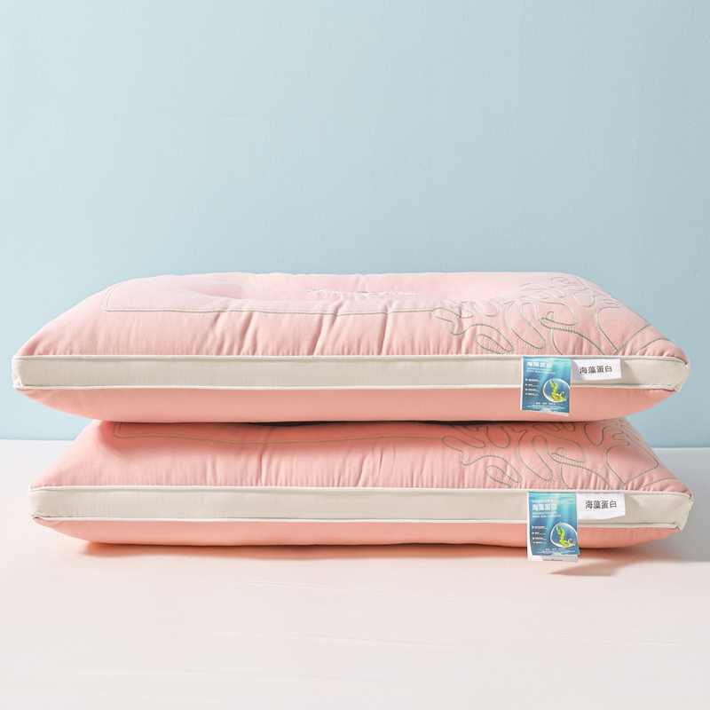 轩琪家纺 2025新款刺绣海藻蛋白枕头枕芯 粉色 800克
