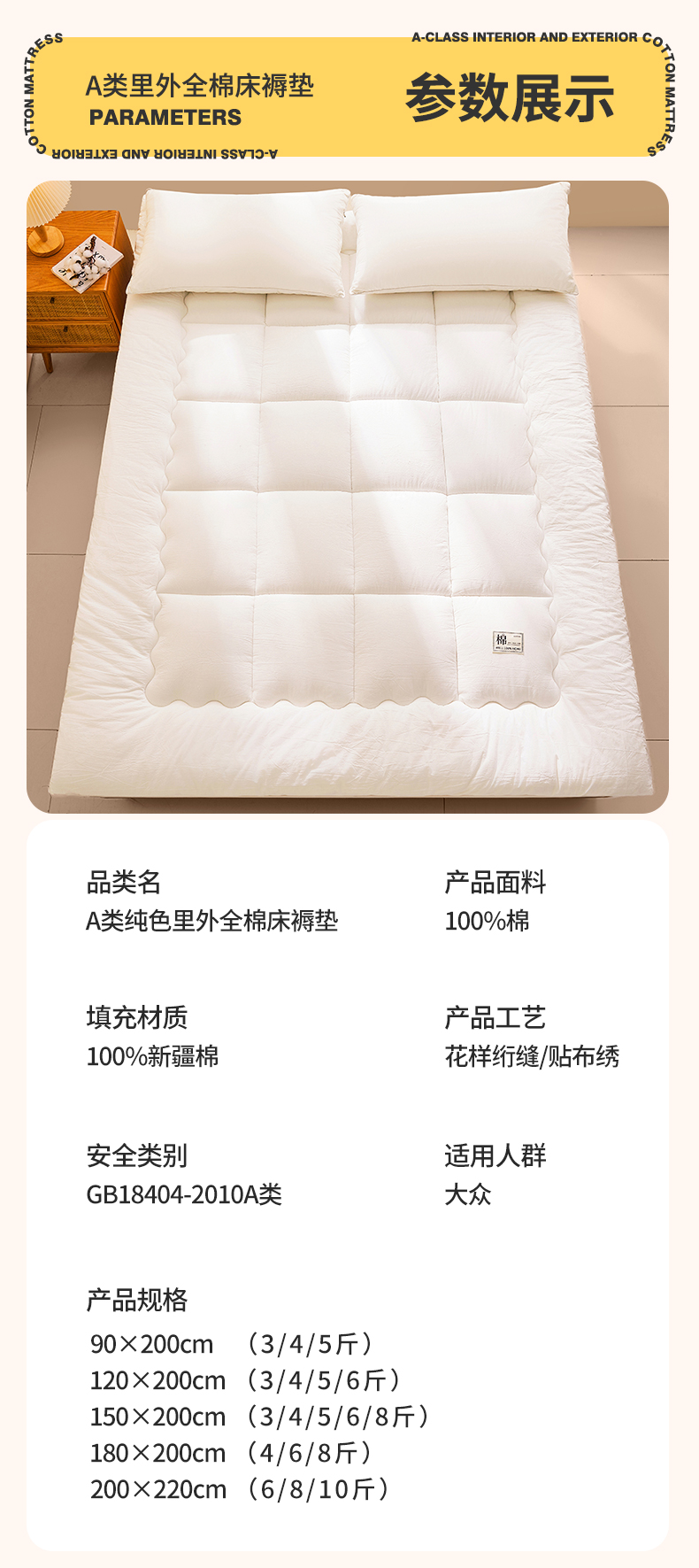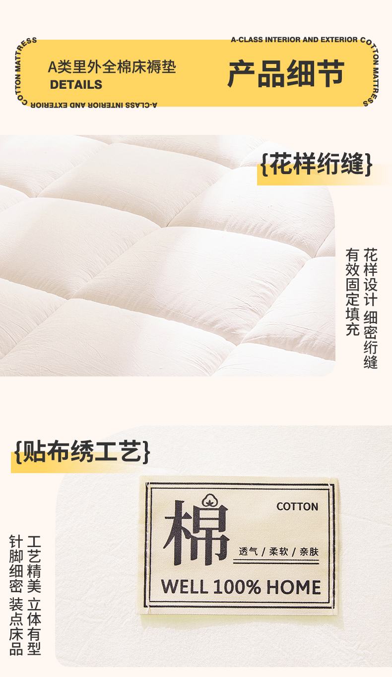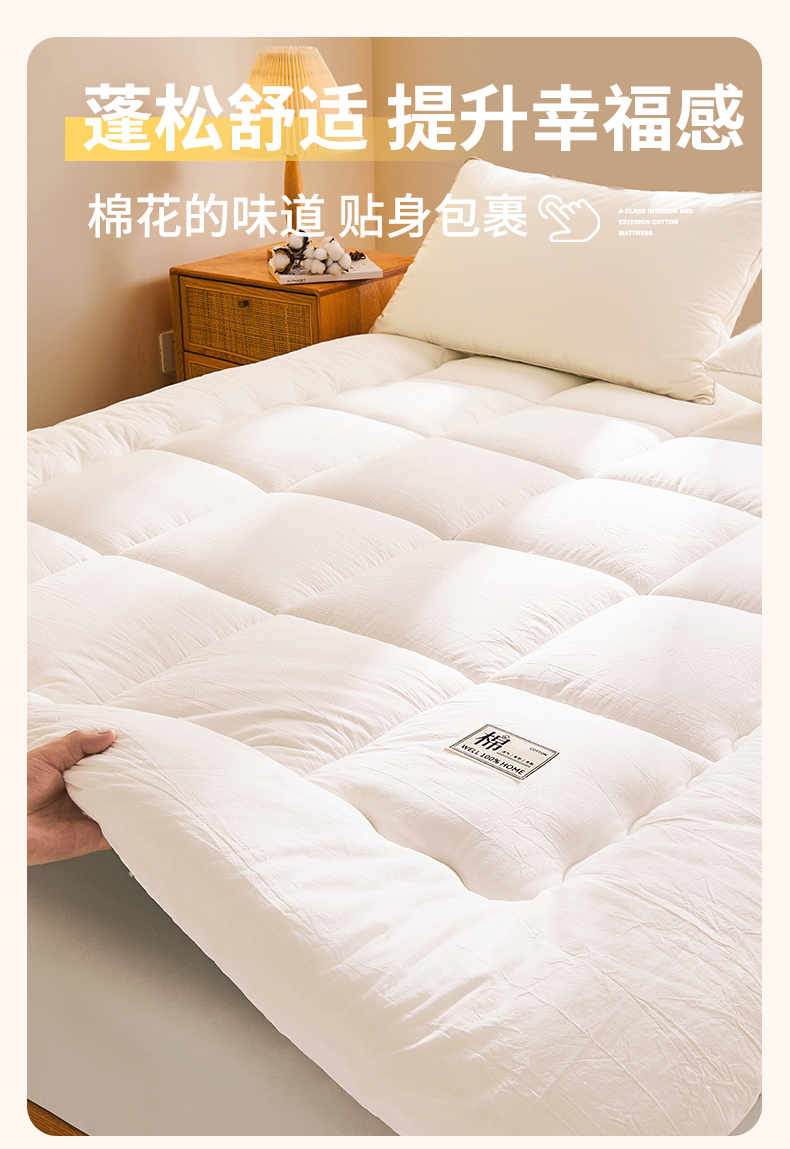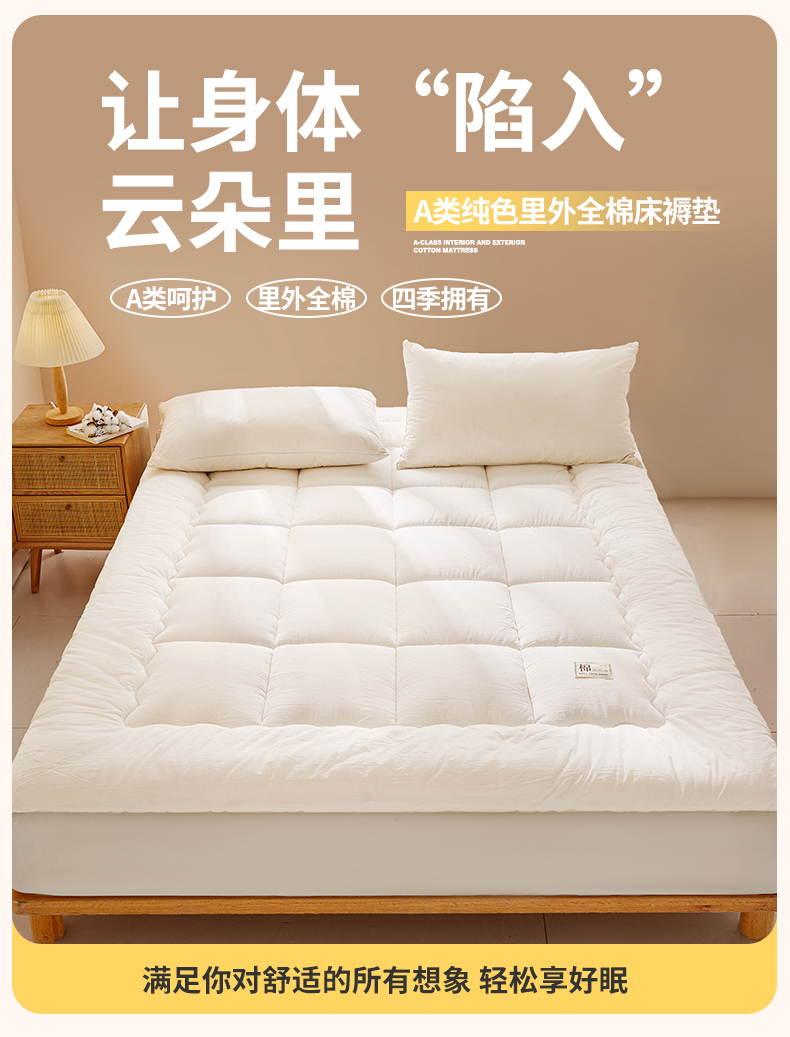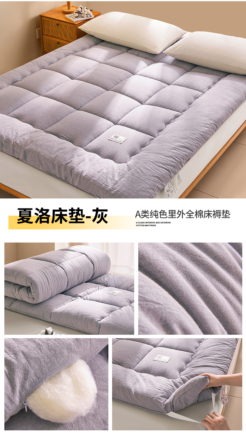 当前位置: 91家纺网 > 商品网购 > 床垫/床褥 > 普通床垫 > 西域种棉人·千百笠 2025新款A类抗菌里外全棉100%新疆棉花褥子床垫垫被软垫家用棉花被褥铺底 夏洛床垫-白