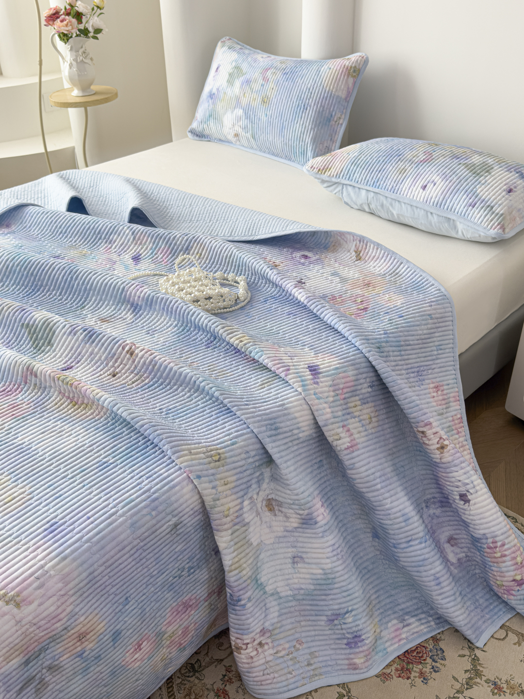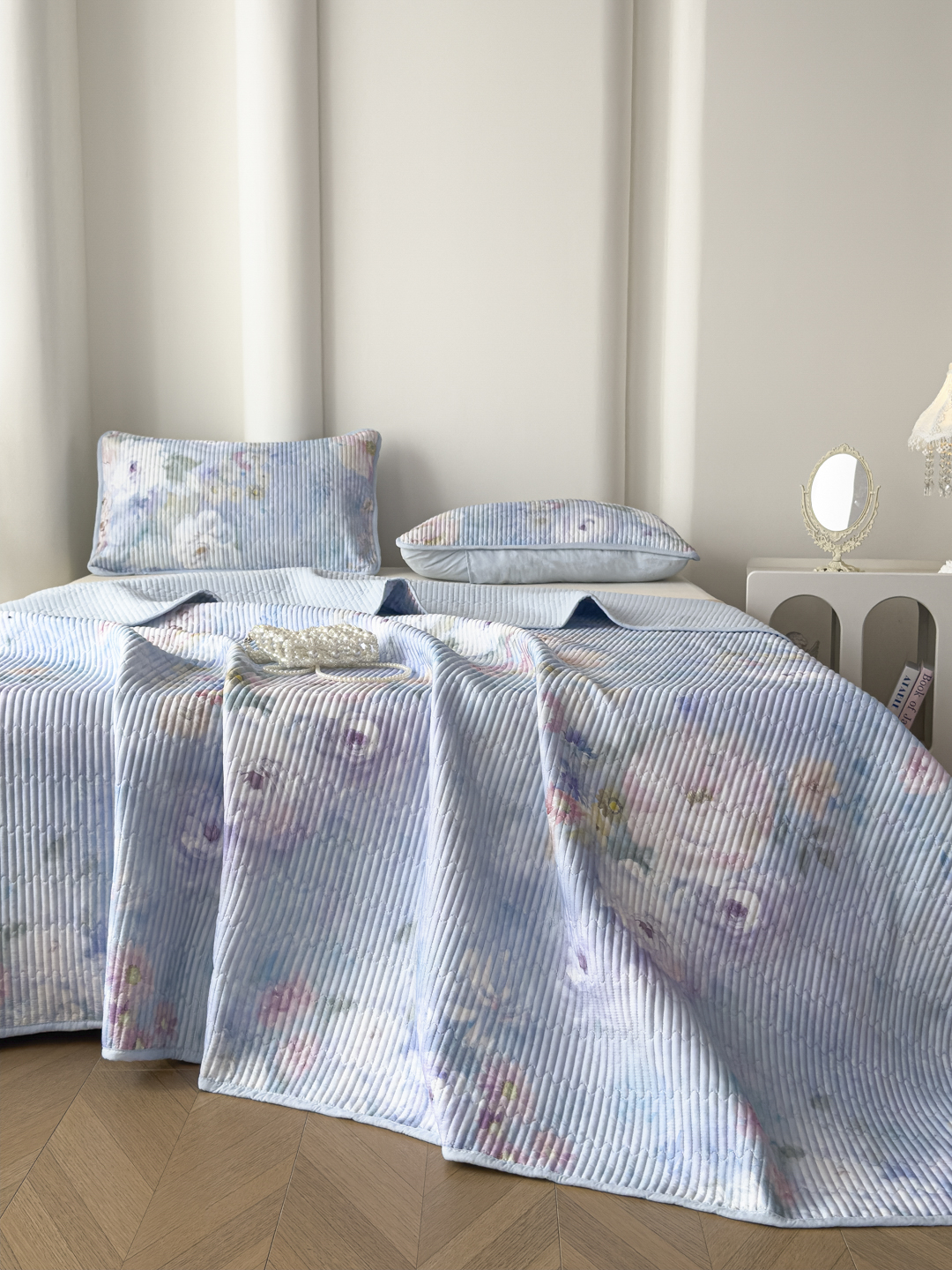 当前位置: 91家纺网 > 商品网购 > 床品套件 > 三件套 > 橘夏家纺 2025新款莱赛尔天丝轻奢风多功能床盖三件套软凉席盖毯 朝花夕拾