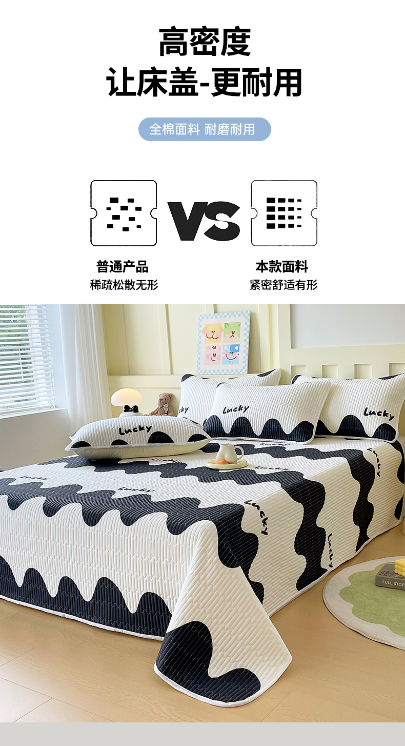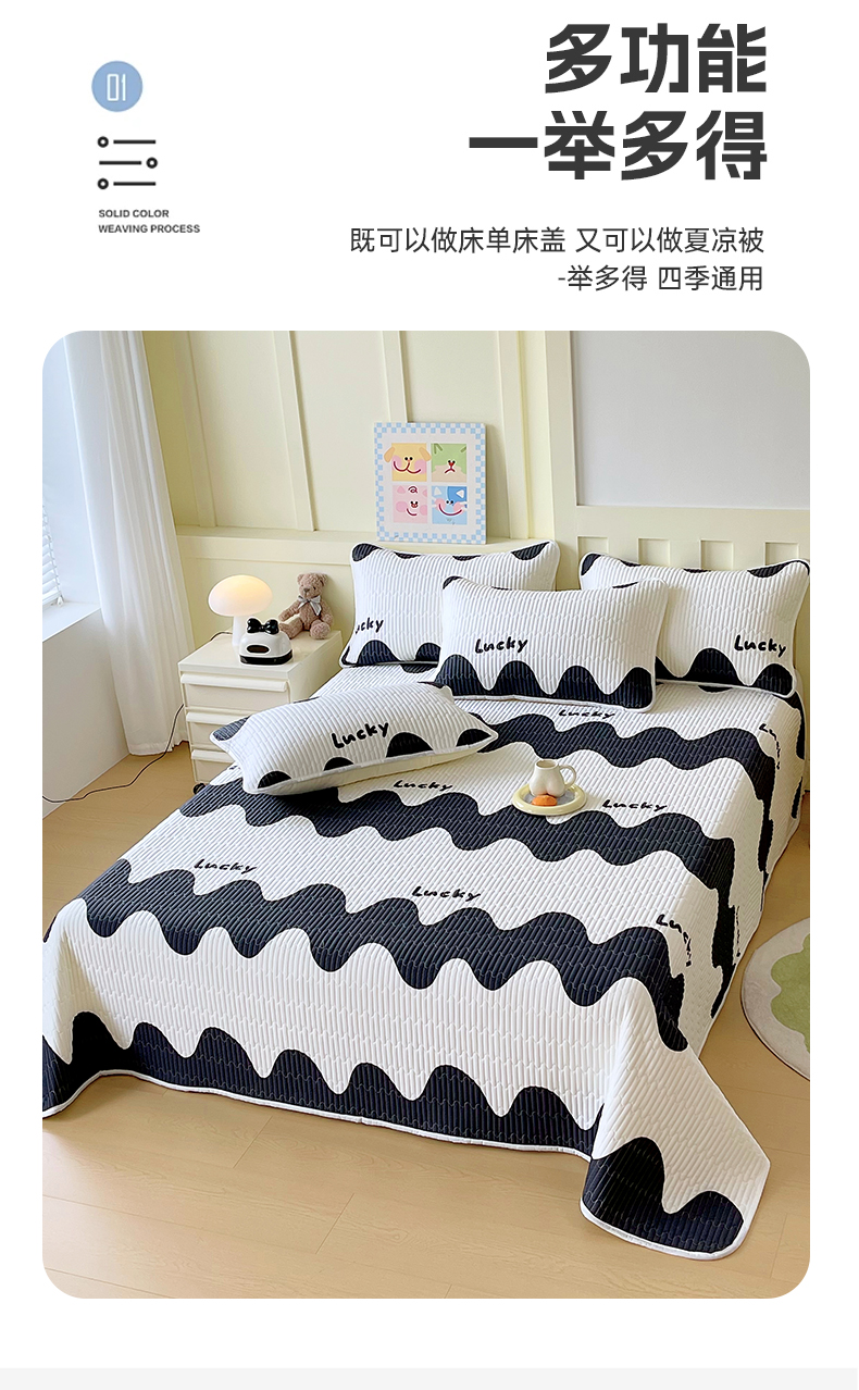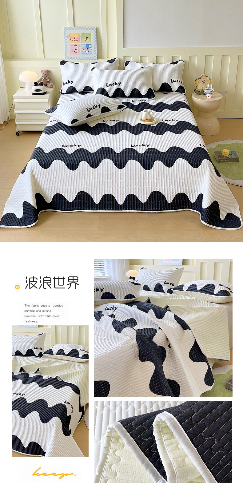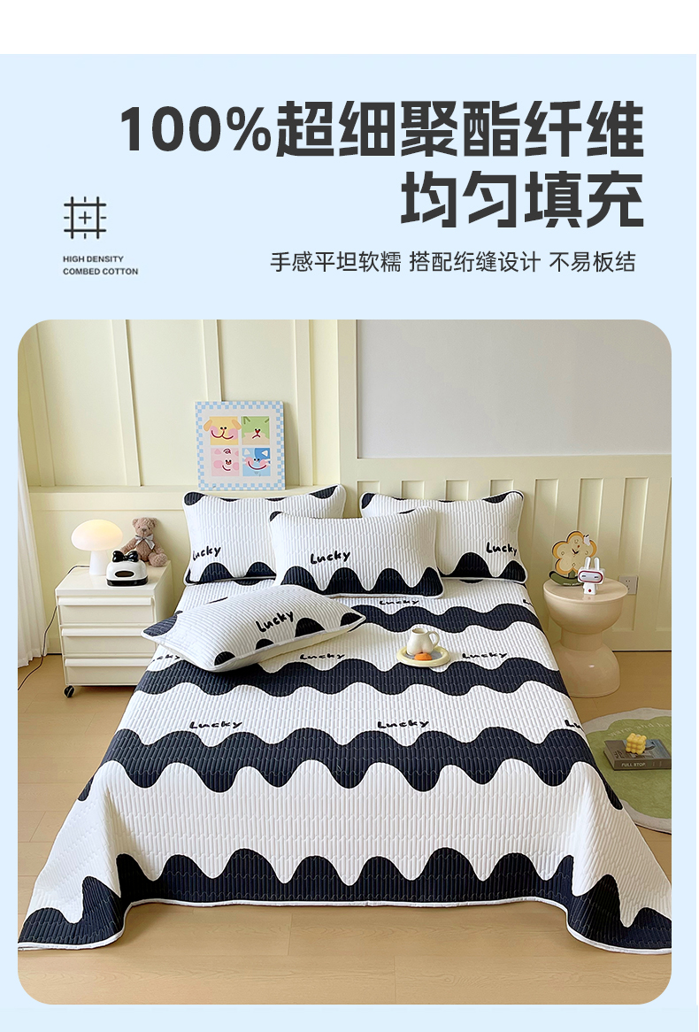 金鑫汇家纺2025新款A类全棉绗缝夹棉印花床盖 波浪世界