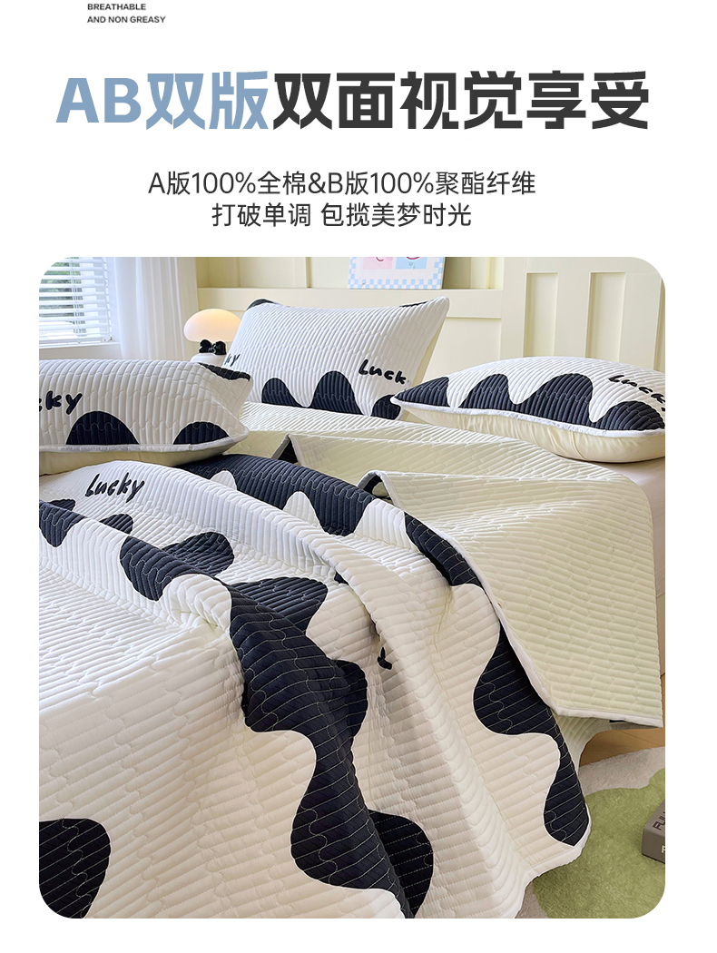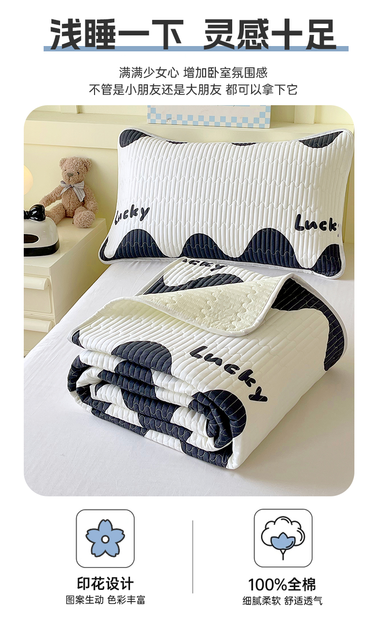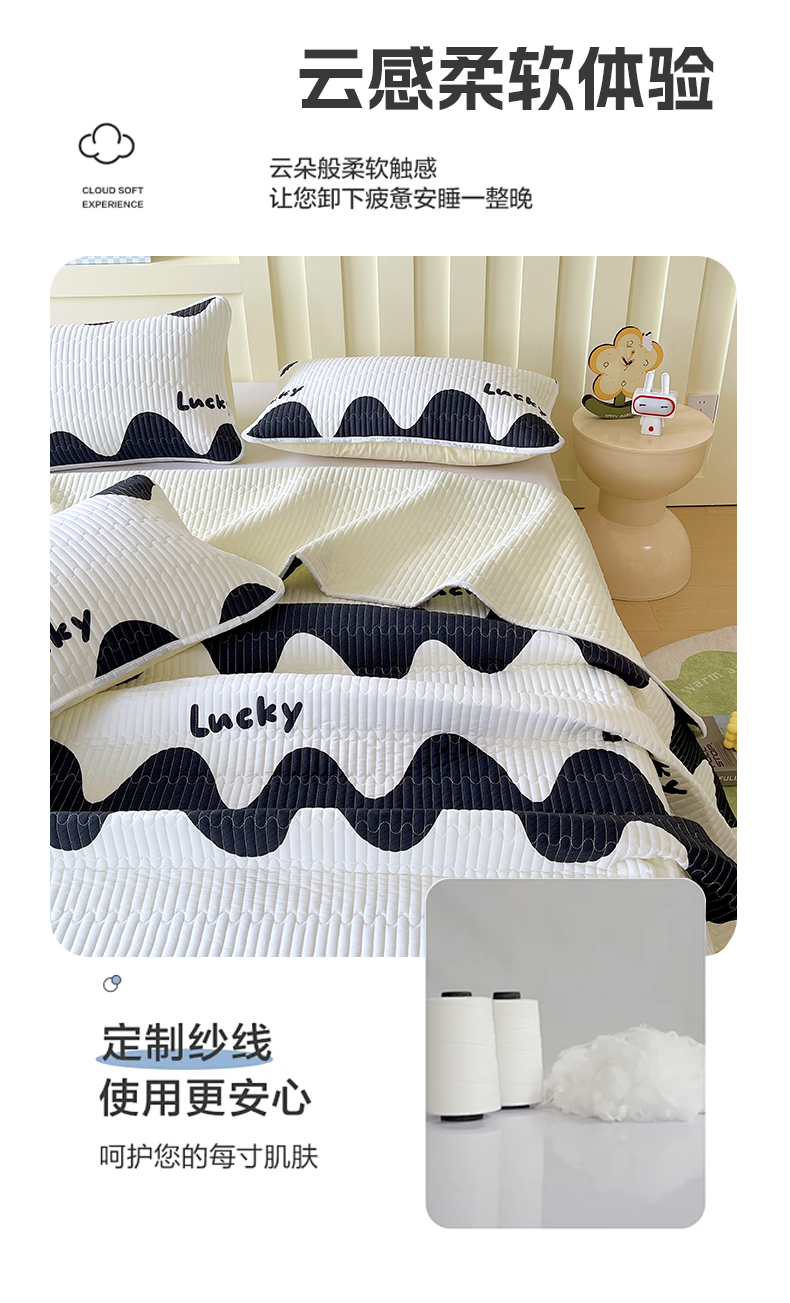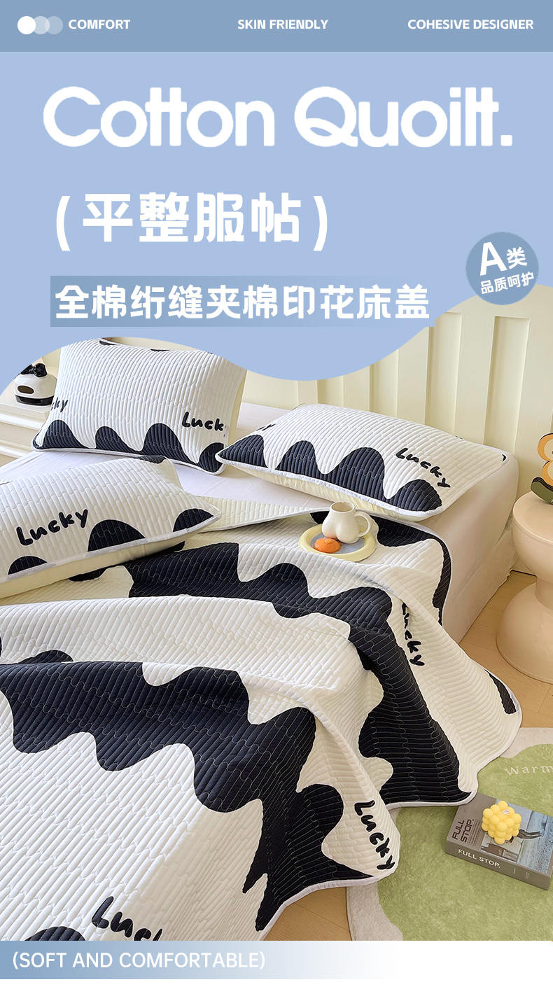 金鑫汇家纺2025新款A类全棉绗缝夹棉印花床盖 波浪世界