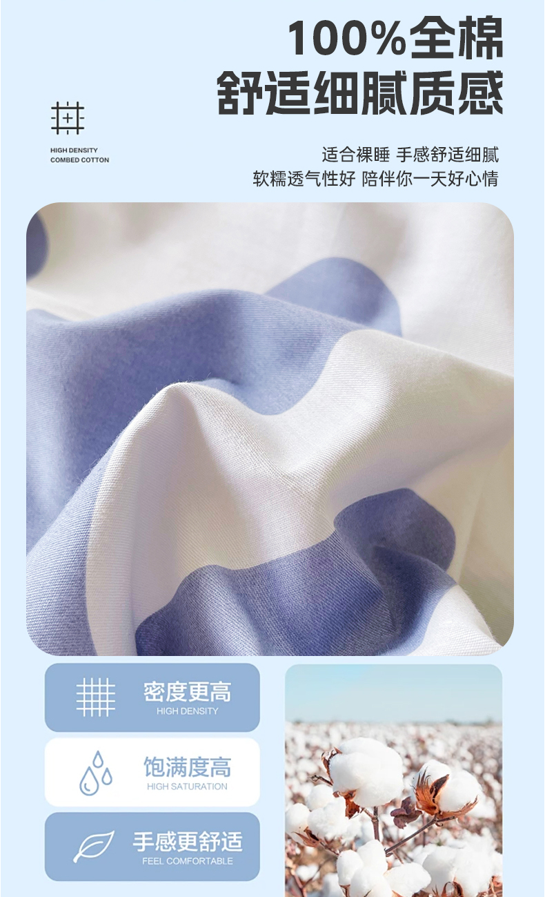 (总)金鑫汇家纺 2026新款全棉印花小清新单品被套系列-可露丽,海盐可露丽,浅咖可露丽,浅绿可露丽,月下花影-桔,月下花影-蓝,月下花影-绿