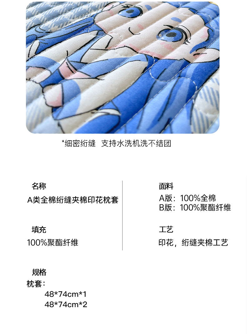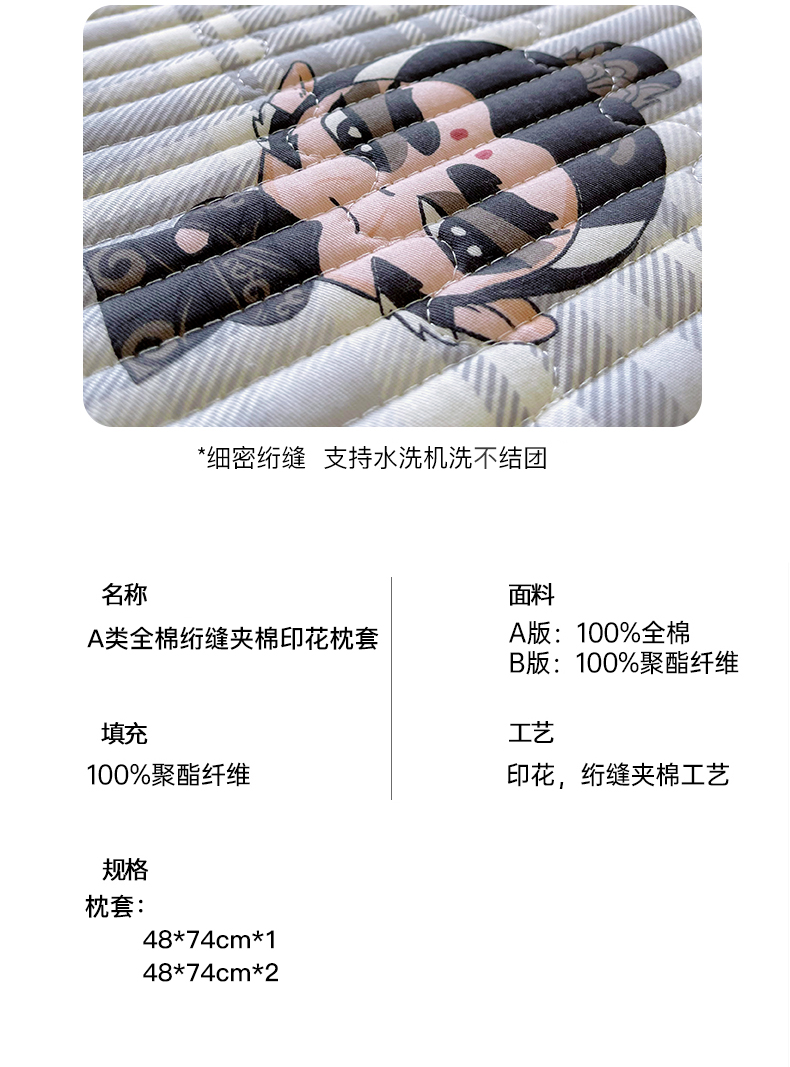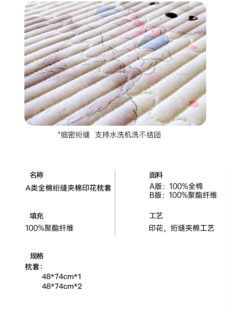 商品名称:(总)金鑫汇家纺 2025新款A类全绗缝夹棉印花枕套