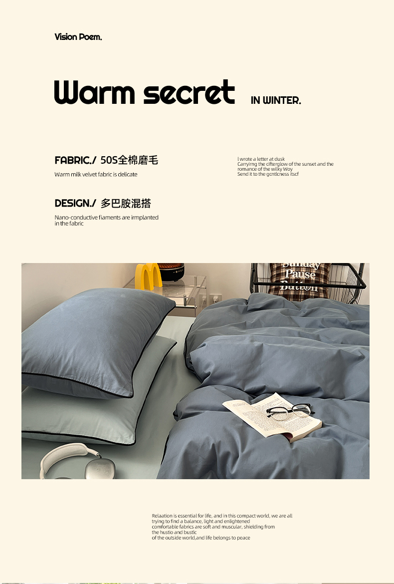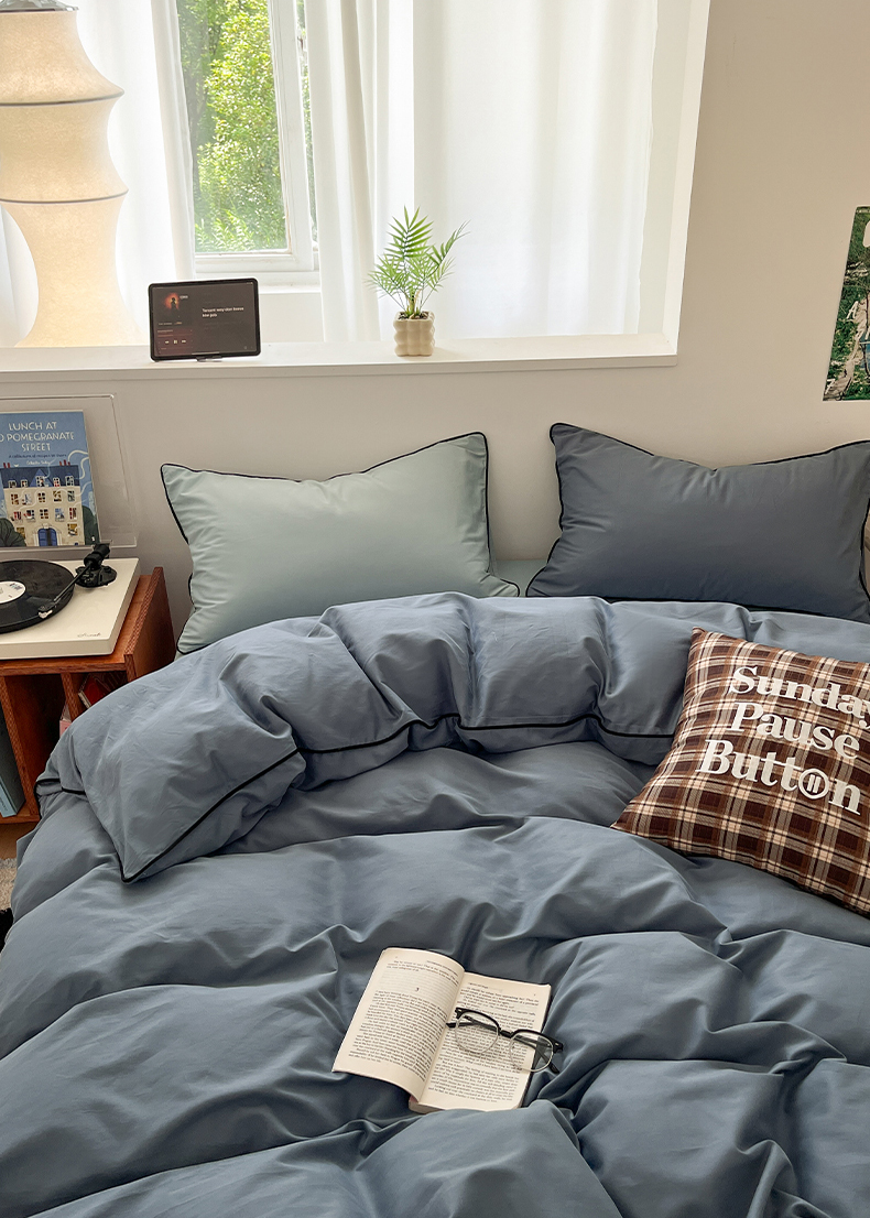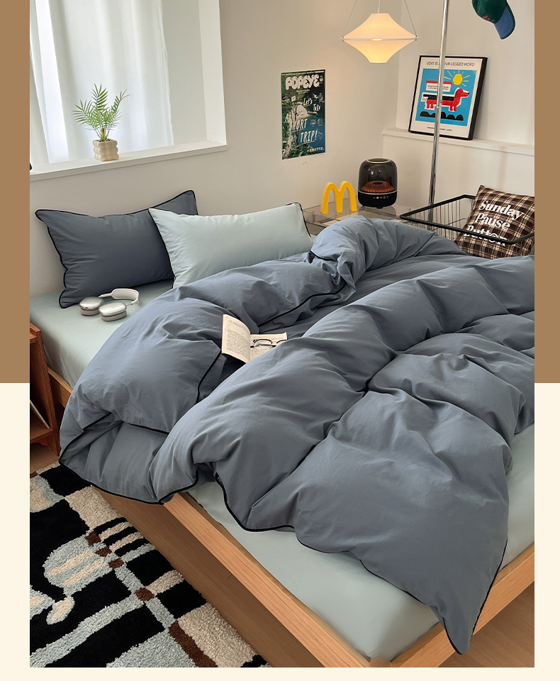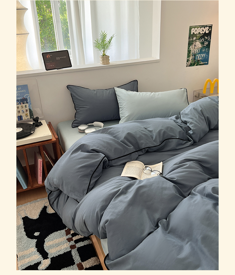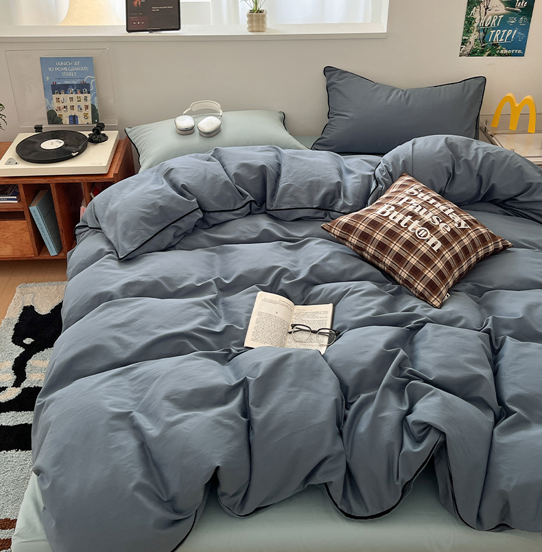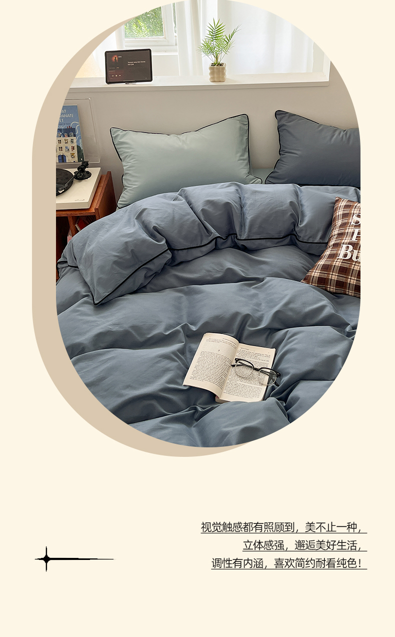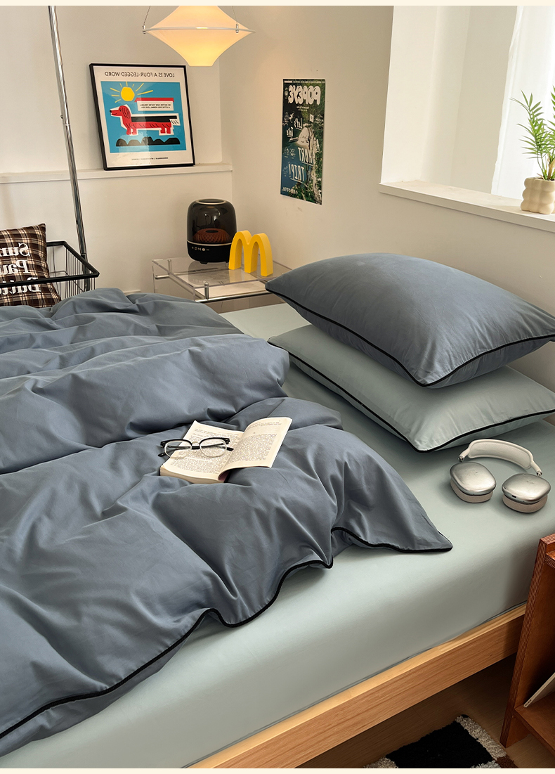 当前位置: 91家纺网 > 商品网购 > 床品套件 > 四件套 > 普通磨毛四件套 > 三朵家纺 2025新款50支加厚全棉纯棉磨毛混搭四件套-美拉德系列 秋波蓝