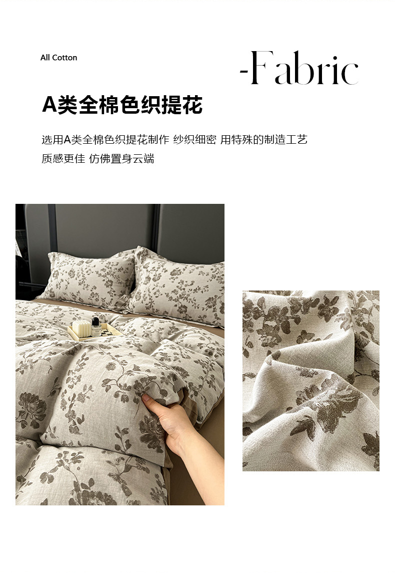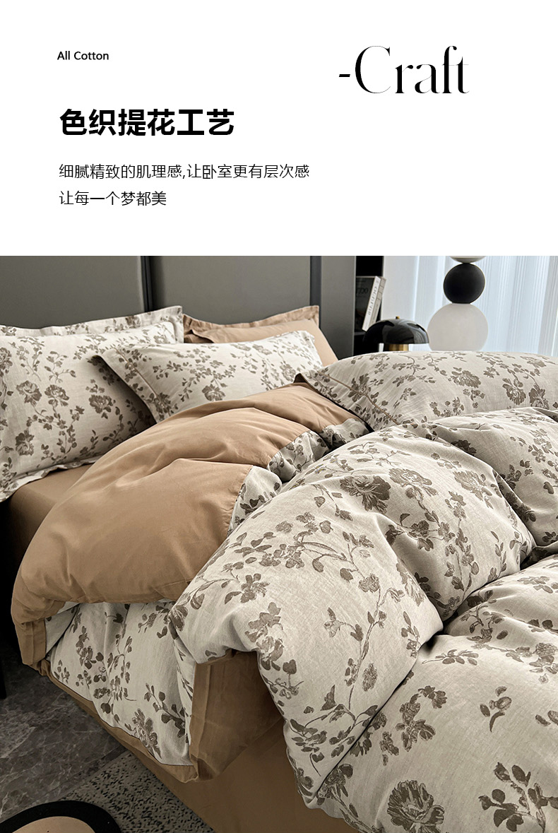 当前位置: 91家纺网 > 商品网购 > 床品套件 > 四件套 > 全棉普通四件套 > 锦彩家居 2025新款A类60支全棉纯棉色织提花四件套-复古风系列 屋顶花园-卡其