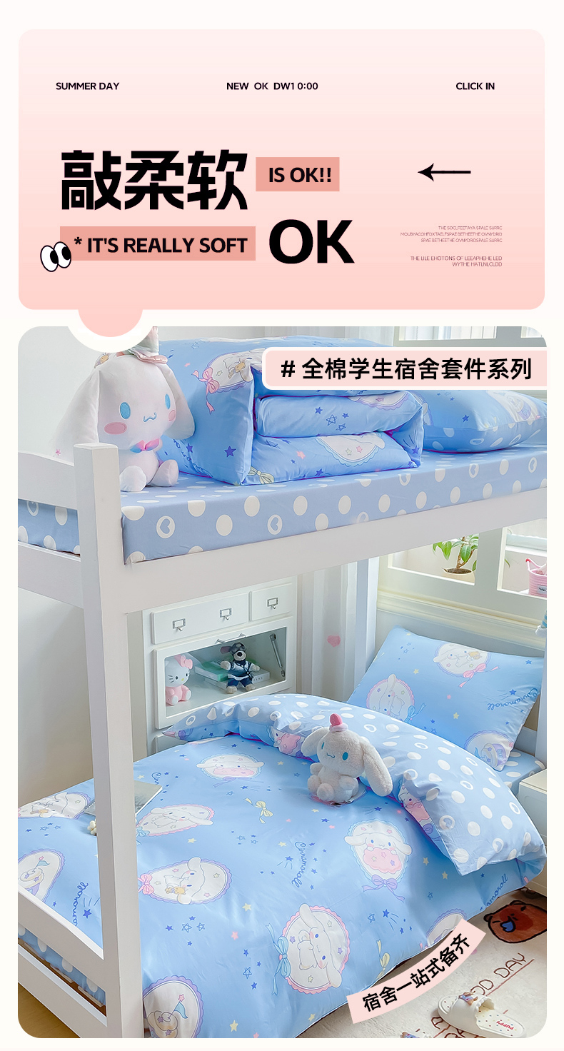 当前位置: 91家纺网 > 商品网购 > 床品套件 > 三件套 > 博雅 2025春夏新款三丽鸥全棉纯棉卡通学生宿舍三件套上下铺三件套-小版 蓝色玉桂狗