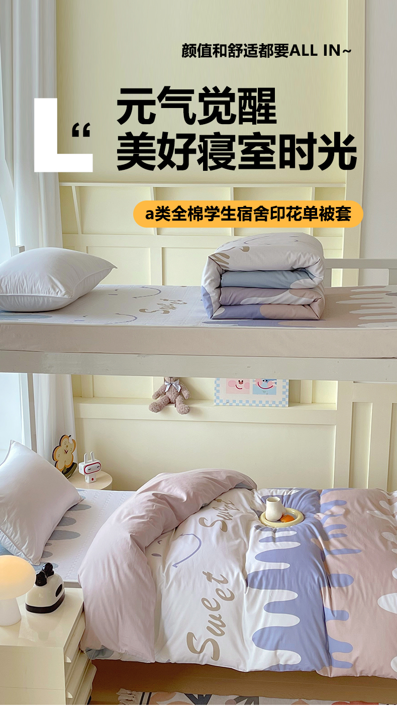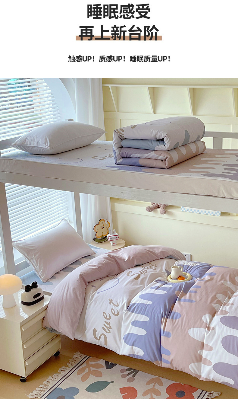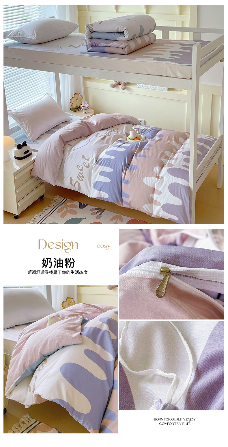 当前位置: 91家纺网 > 商品网购 > 床品套件 > 四件套 > 全棉普通四件套 > 金鑫汇家纺2025新款全棉纯棉宿舍印花学生宿舍上下铺三件套单被套 奶油粉