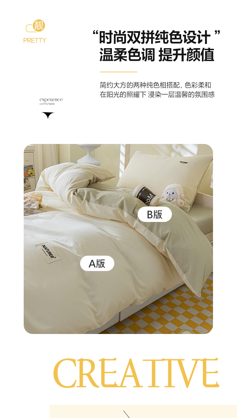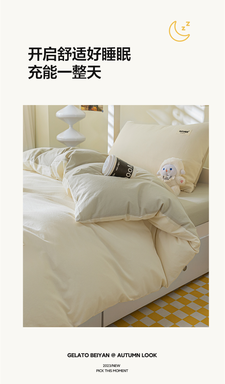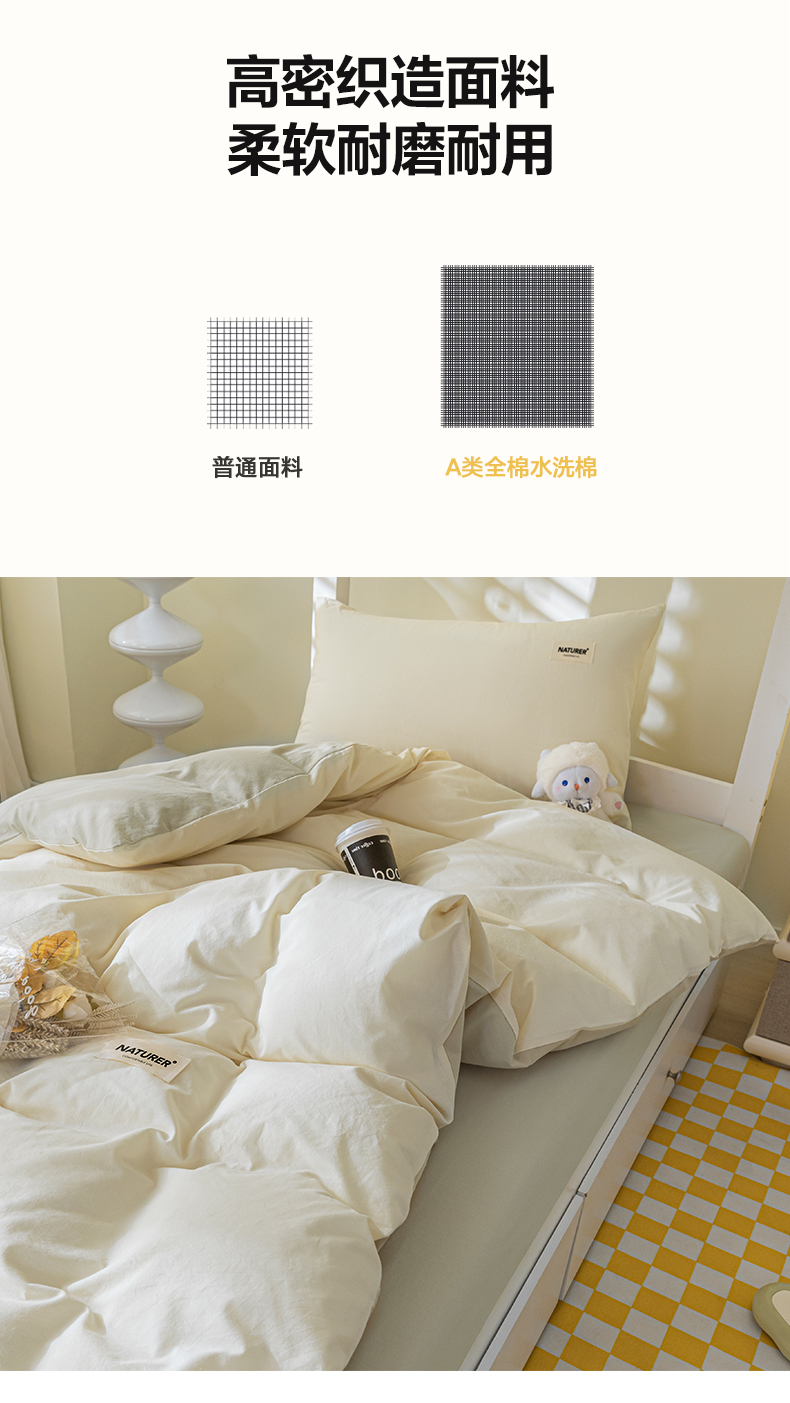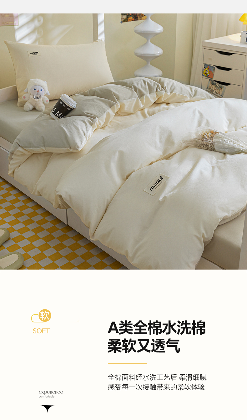 商品名称:佳汐蓝家纺 2025新款A类全棉水洗棉学生三件套 贴标-奶昔白+奶茶