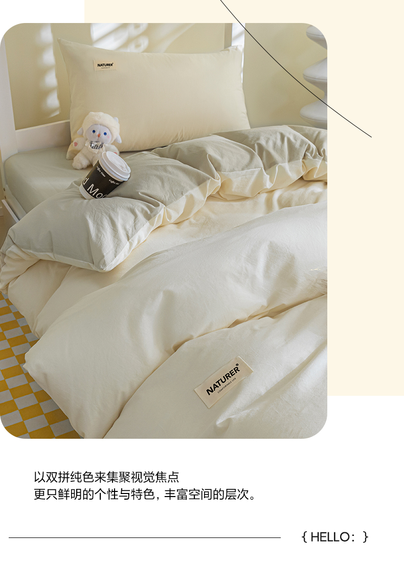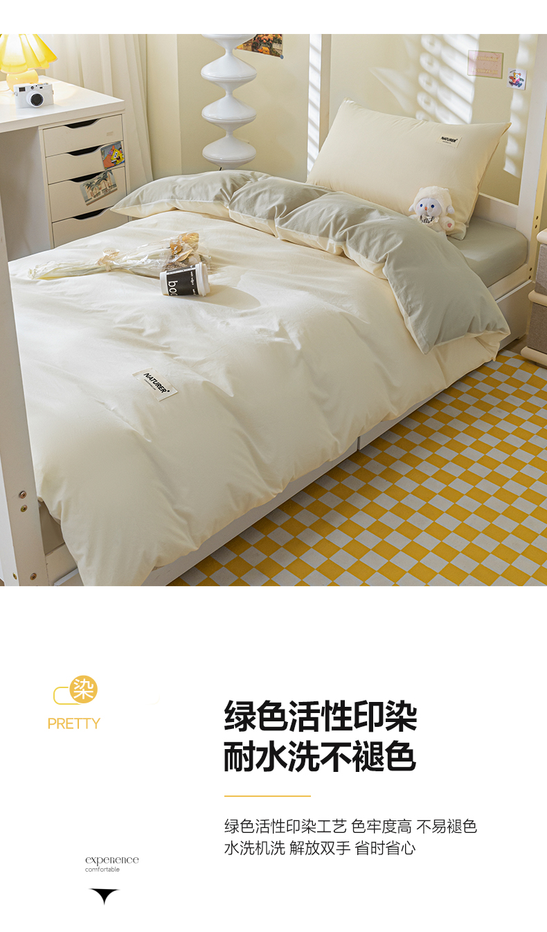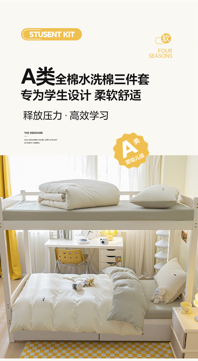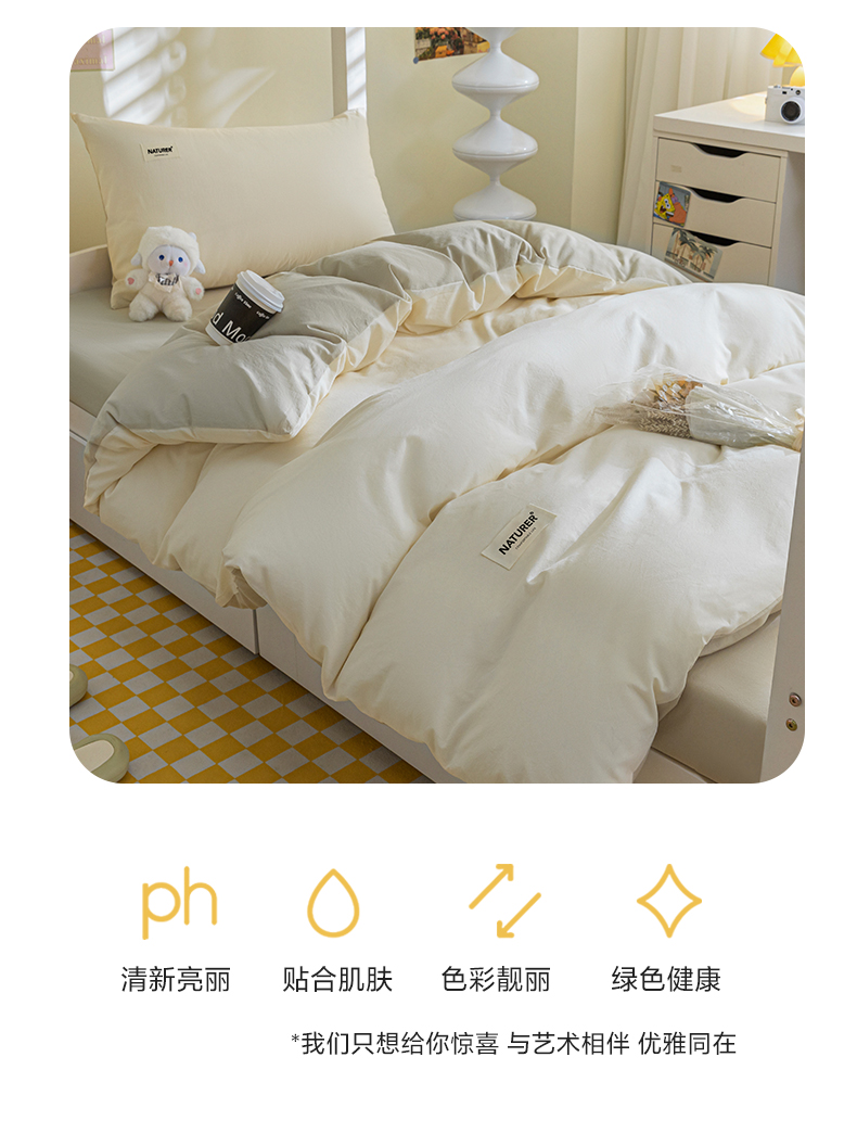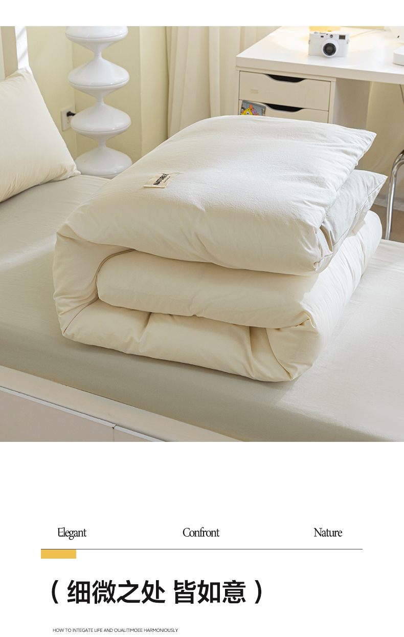 佳汐蓝家纺 2025新款A类全棉水洗棉学生三件套 贴标-奶昔白+奶茶