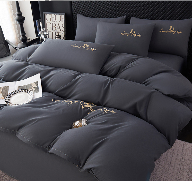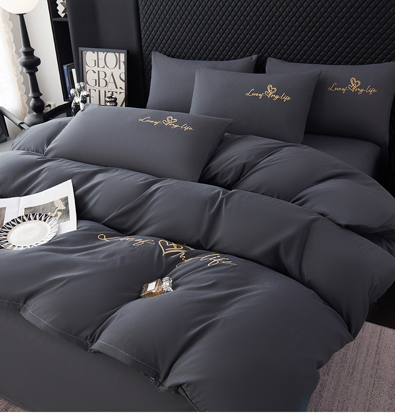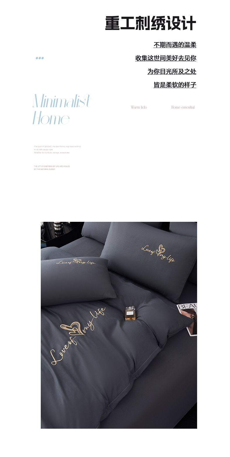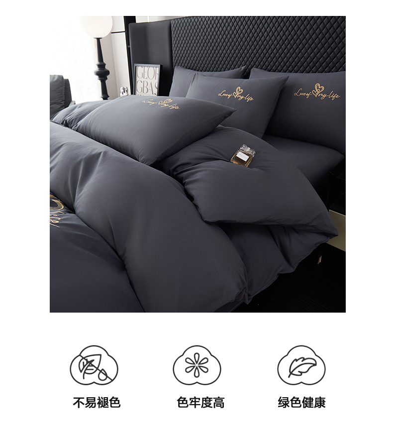 商品名称:鑫缘家纺 2025新款水洗磨毛纯色绣花四件套(110克) 石墨灰
